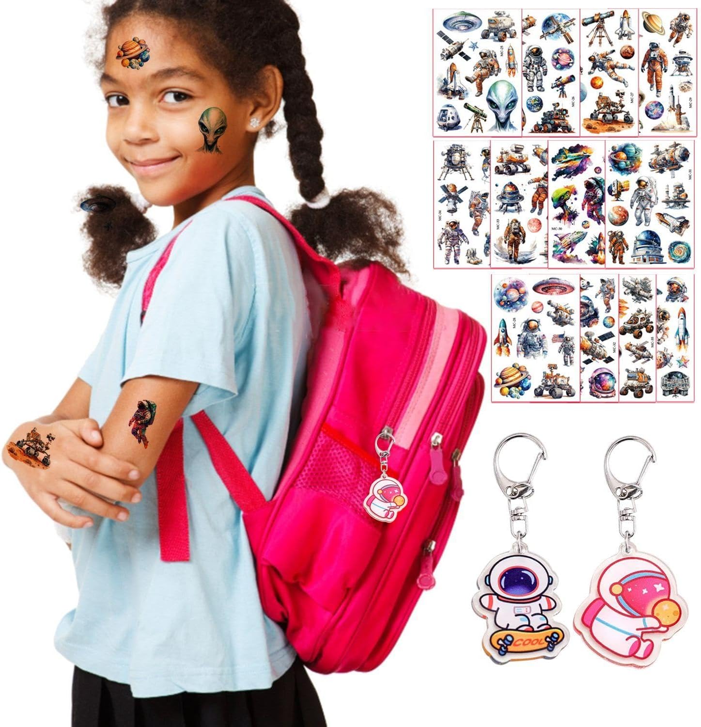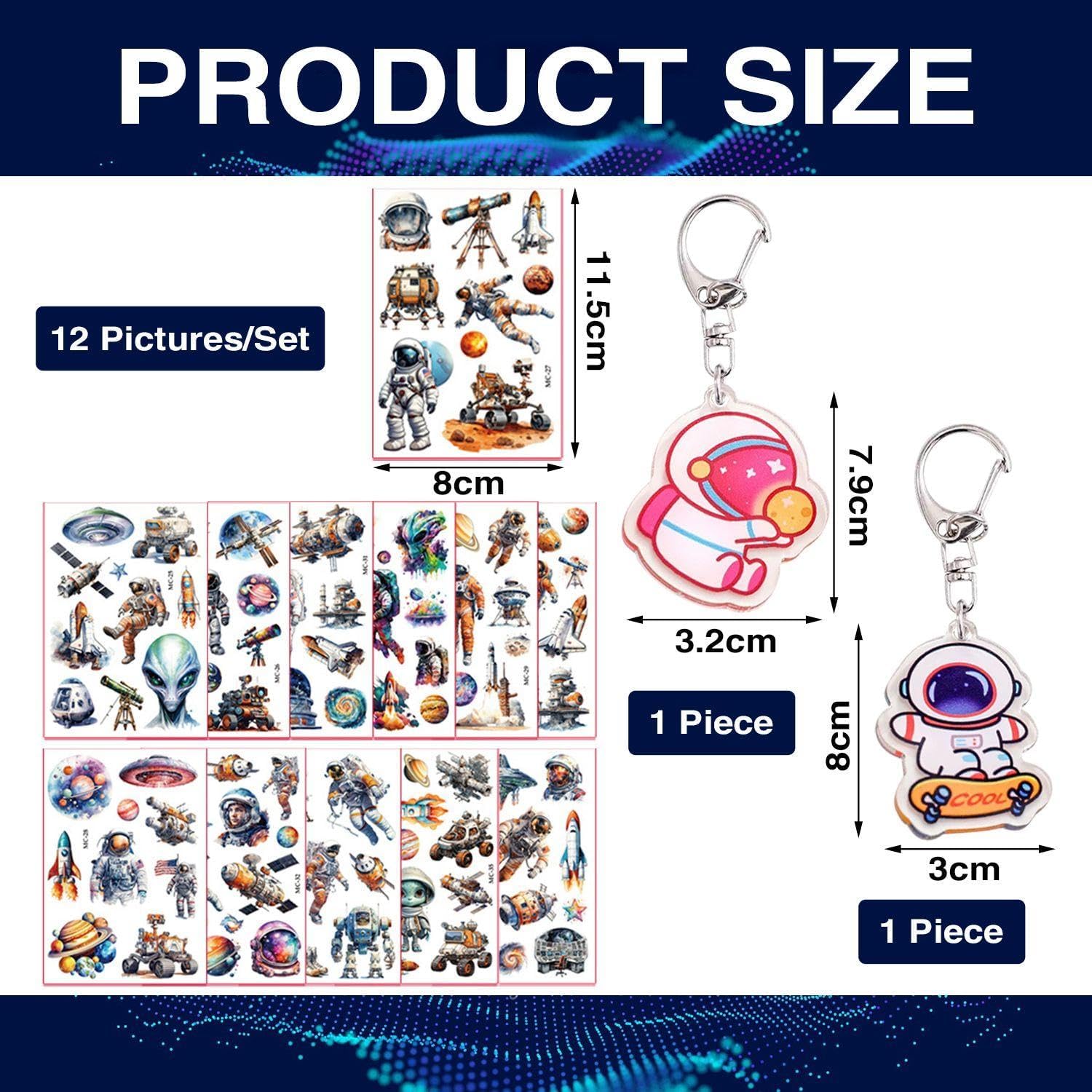 【Contenuto del prodotto】 Riceverai 12 adesivi per tatuaggi spaziali e 2 pendenti per chiavi spaziali. L'adesivo del tatuaggio è alto 11,5 * 8 cm e multicolore; La dimensione delle custodie per portachiavi è 8,3 x 3,1 cm ed è multicolore, adatta per decorazioni e premi per eventi. 【Materiale del prodotto】 L'adesivo del tatuaggio è realizzato con materiali sicuri ed ecologici con buona responsabilità e durata. Il portachiavi è realizzato in acrilico di alta qualità, con colori vivaci, design raffinato, resistente e non facile da sbiadire. 【Design creativo】 Questo prodotto è unico e contiene adorabili astronauti dei cartoni animati ed elementi spaziali adatti ai bambini e agli amanti dello spazio. Gli adesivi per tatuaggi possono essere utilizzati come adesivi premio per aumentare il divertimento. Il design delle chiavi è unico, pratico e decorativo. 【Bacchetta - Distesa】 Questo prodotto è molto adatto come decorazione e ricompensa per assemblee di bambini, feste di compleanno ed eventi scolastici, il che aumenta il divertimento e l'interattività dell'evento. È adatto anche come decorazione da appendere quotidiana per mostrare personalità e hobby. 【Leggero e portatile】 Questo prodotto è piccolo e leggero, facile da trasportare e da utilizzare. Gli adesivi del tatuaggio possono essere attaccati e rimossi in qualsiasi momento, mentre il portachiavi può essere appeso a una borsa o a un portachiavi in qualsiasi momento.