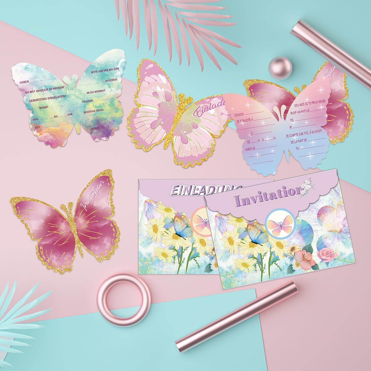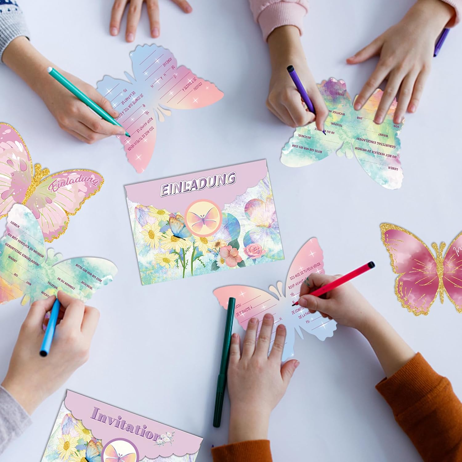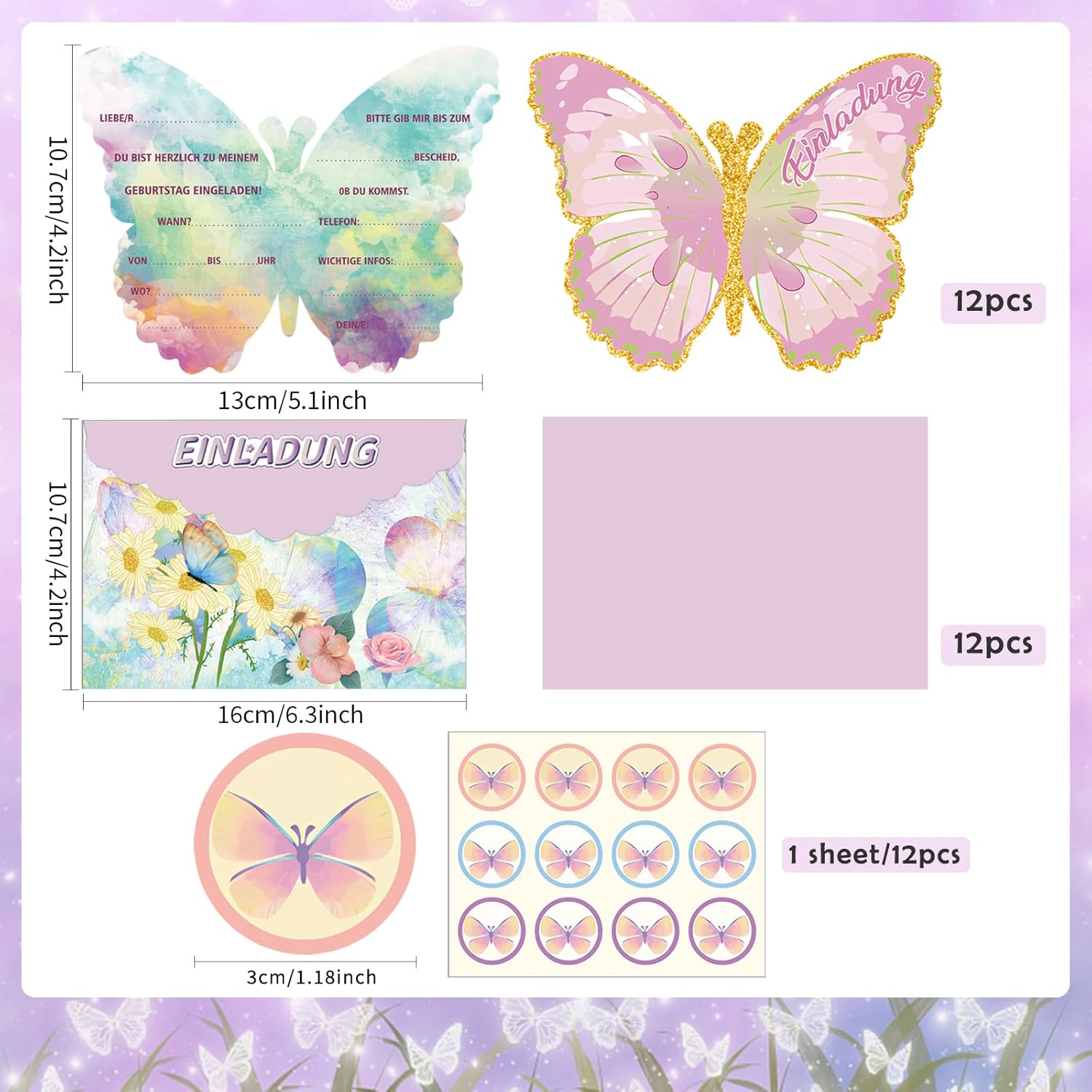 🦋【Biglietti d'invito di compleanno per bambini】Il set di biglietti d'invito con farfalla contiene 12 bellissimi biglietti d'invito, 12 buste corrispondenti e 12 incantevoli adesivi. 🦋 【Materiali di alta qualità】 I biglietti d'invito per le ragazze del compleanno dei bambini sono realizzati in cartone spesso di alta qualità, che è comodo, ha colori vivaci e non si danneggia facilmente. 🦋【Design a forma di farfalla】Questi biglietti d'invito per il compleanno di bambini sono splendidamente progettati a forma di farfalla, che simboleggia l'eleganza e la bellezza, è molto popolare tra le ragazze. 🦋【Risparmia tempo】Sul retro degli inviti di compleanno puoi facilmente specificare il luogo, la data e l'ora della festa e fornire tutte le informazioni importanti in modo semplice e chiaro. 🦋【Molteplici occasioni】Che si tratti di un compleanno per bambini, un matrimonio, una celebrazione dell'anniversario, una festa in giardino o un'altra celebrazione festiva, questi inviti a farfalla sono ideali per varie occasioni.