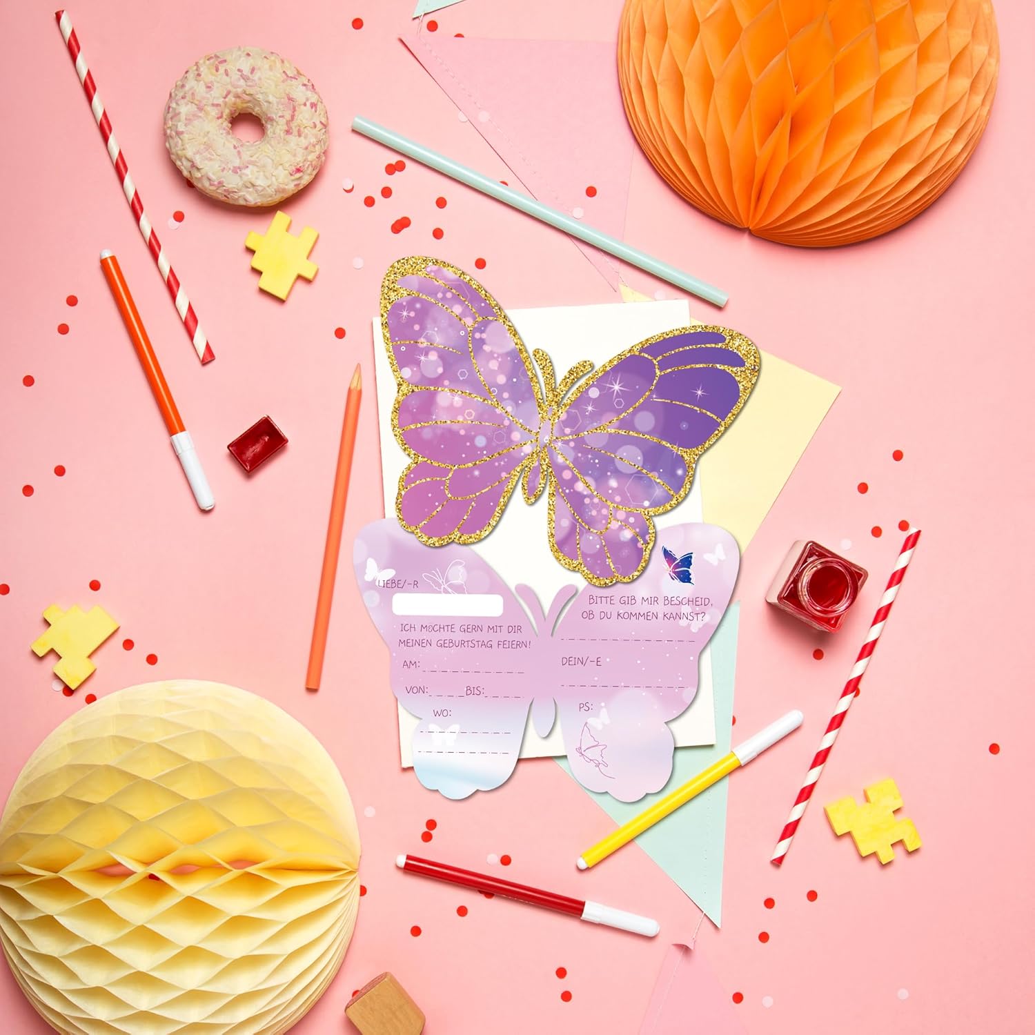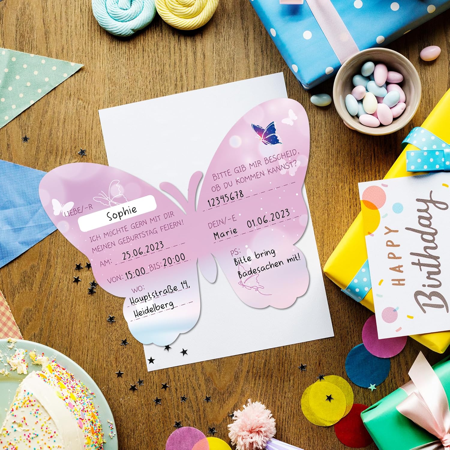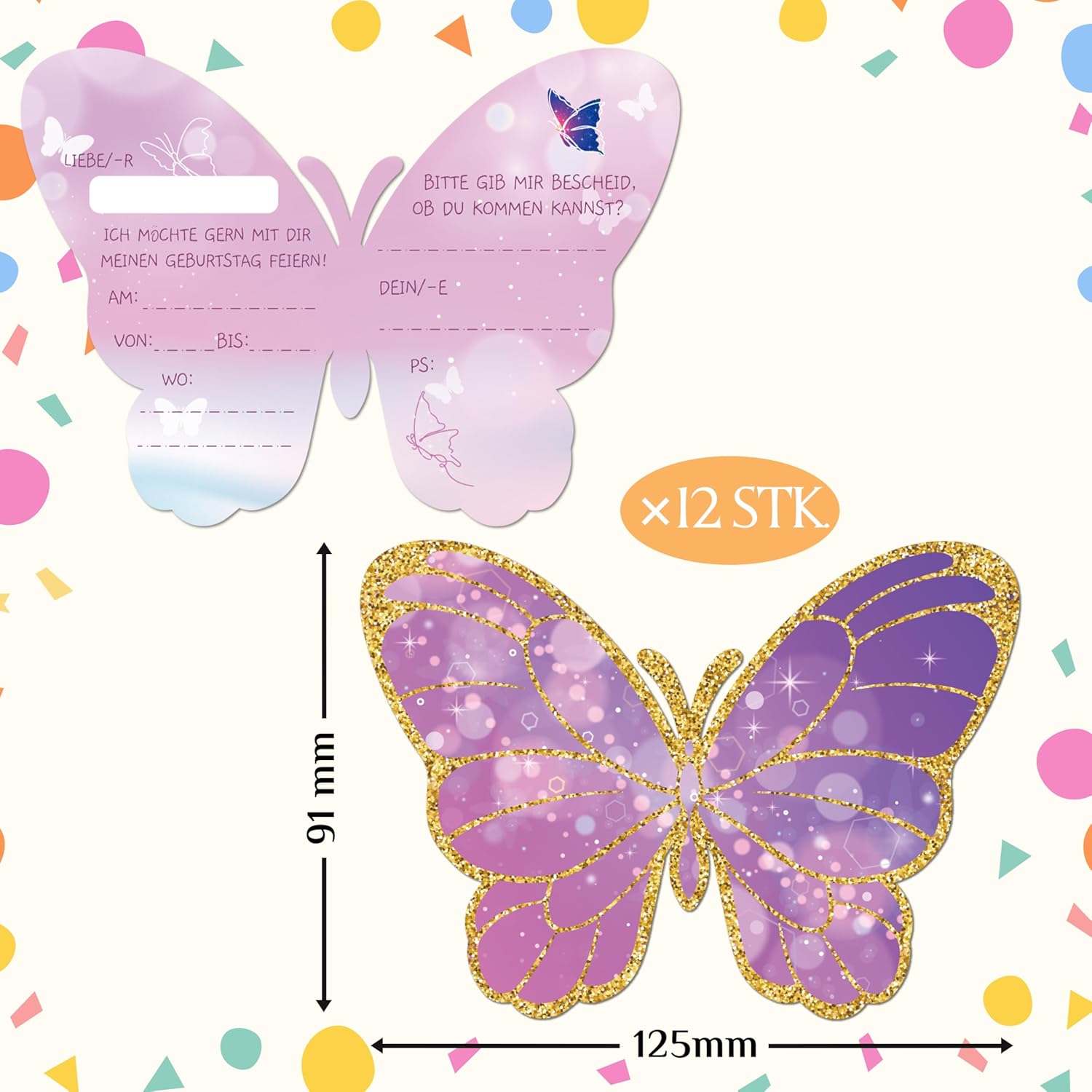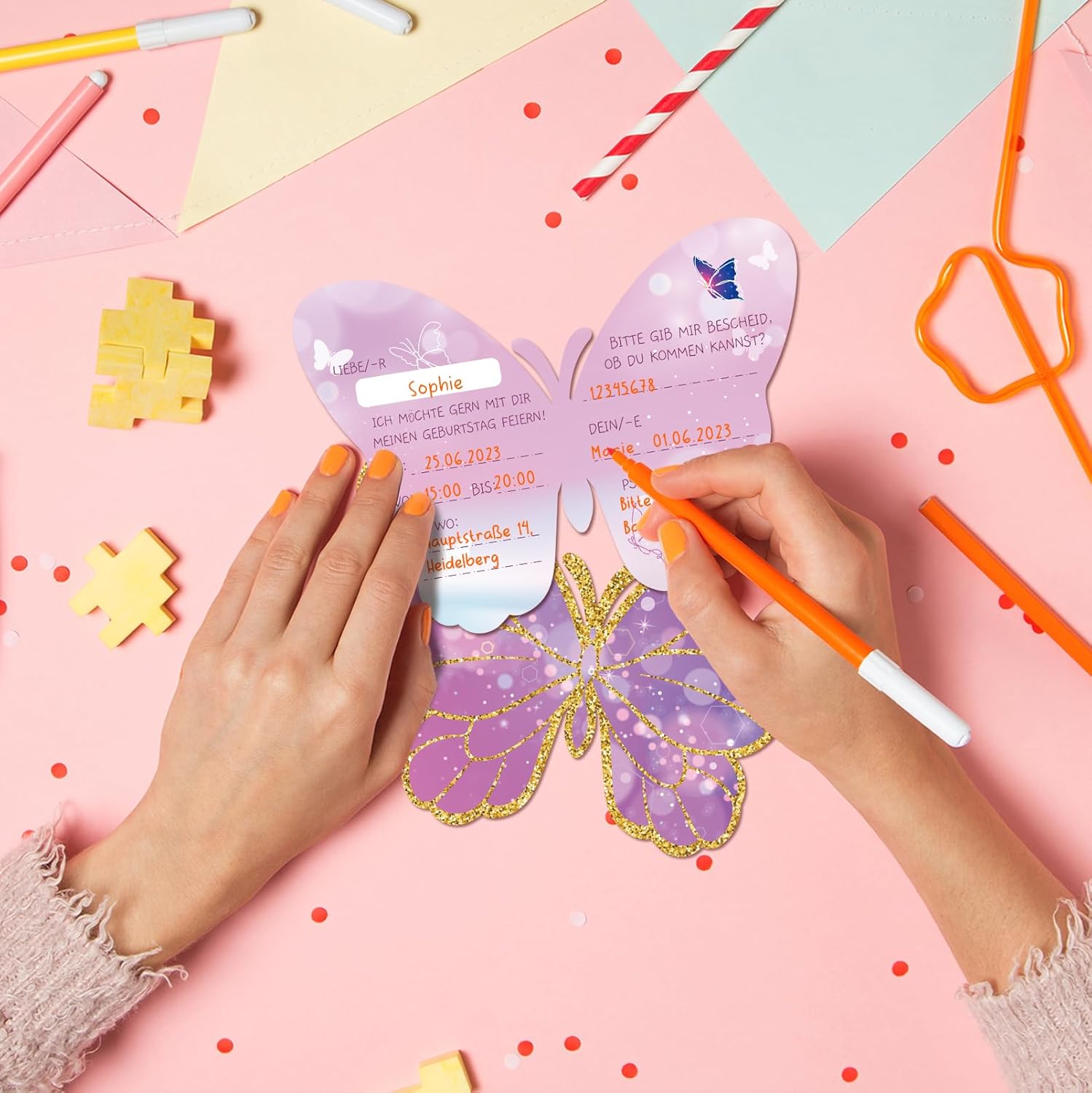Simpatici biglietti d'invito con farfalle: 12 biglietti d'invito con motivi di farfalle vivaci e dolci e decorazioni dorate lucide che brillano alla luce e creano una magica atmosfera di festa! Gli elementi scintillanti affascinano i bambini fin dall'inizio e garantiscono loro momenti di gioco indimenticabili. Successo in 5 minuti: i campi predefiniti per data, posizione e messaggio personale (PS) consentono una personalizzazione rapida e semplice. Niente più noiose scritte a mano: con i nostri modelli prestampati, i tuoi inviti saranno pronti in pochi minuti! Questo è l'ideale se vuoi invitare molti ospiti rapidamente. BIGLIETTO DI ALTA QUALITÀ - I nostri biglietti d'invito sono stampati su cartoncino da 300 g/m² (125 mm x 91 mm) e ricoperti con una resistente lamina metallica dorata. Anche dopo un uso ripetuto il colore rimane brillante. Il retro può essere facilmente scritto con una penna. Questo set da 12 pezzi è perfetto per un incontro con gli amici o una festa di famiglia! Festa di compleanno indimenticabile: Per un compleanno indimenticabile Rendi il compleanno di tuo figlio un momento culminante. Con i nostri biglietti d'invito per ragazze e ragazzi puoi mostrare ai tuoi ospiti cosa li aspetta: un'emozionante festa di compleanno! Garanzia del servizio: ci impegniamo a fornirti prodotti della massima qualità. In caso di commenti o suggerimenti, utilizzare la scheda post-vendita inclusa. Indipendentemente dal momento dell'acquisto e dalla durata di utilizzo, ti offriamo un servizio clienti soddisfacente.