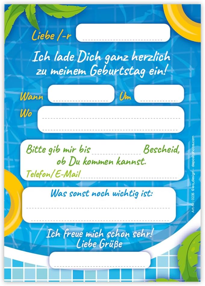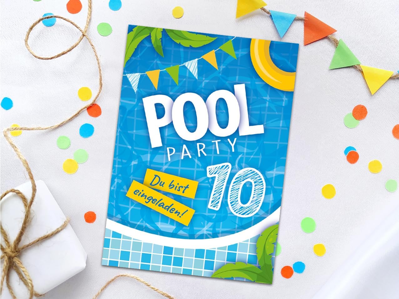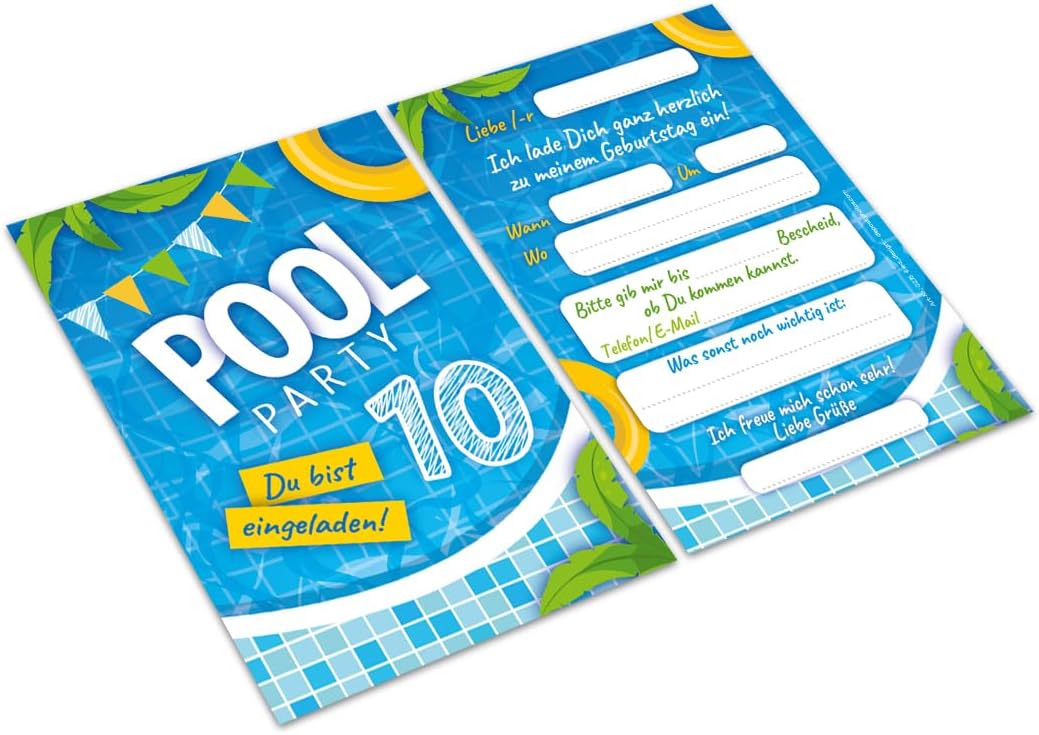 12 biglietti d'invito per il 10° compleanno per bambini, piscina, nuoto, ragazzi, ragazze, inviti decimo compleanno