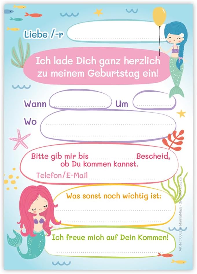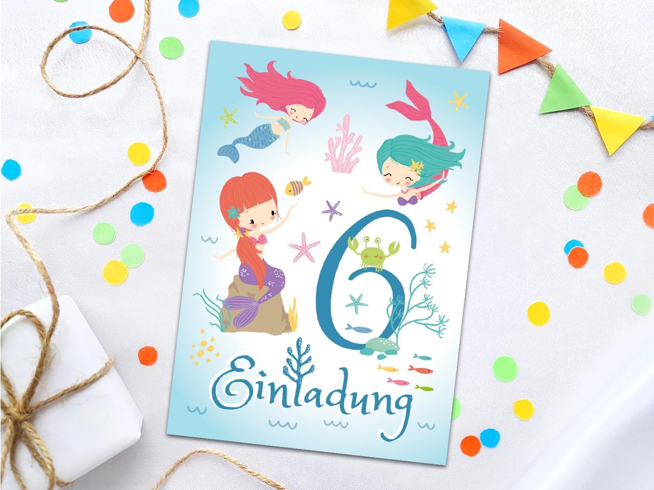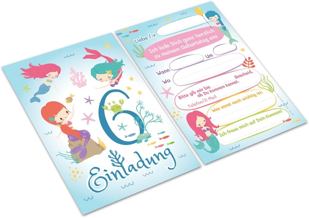 12 biglietti d'invito per il 6° compleanno dei bambini, motivo: sirena, invito, sesto compleanno, per bambini, inviti di compleanno colorati