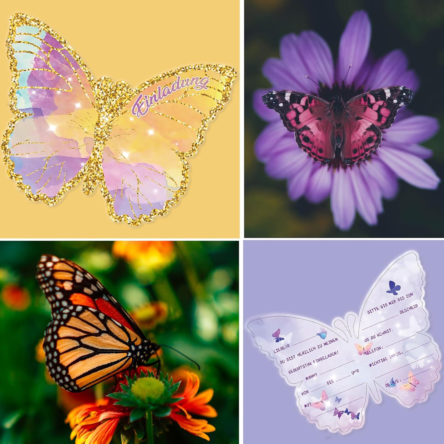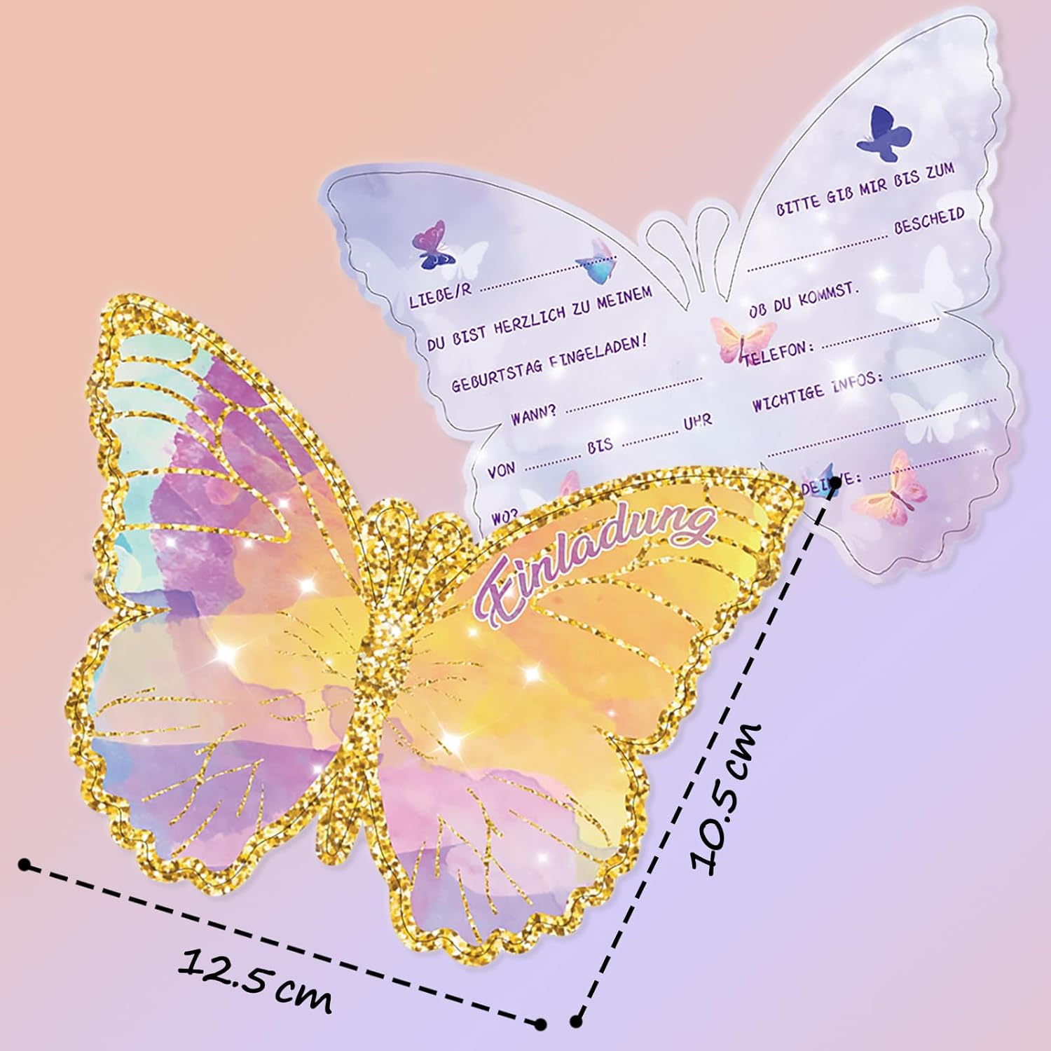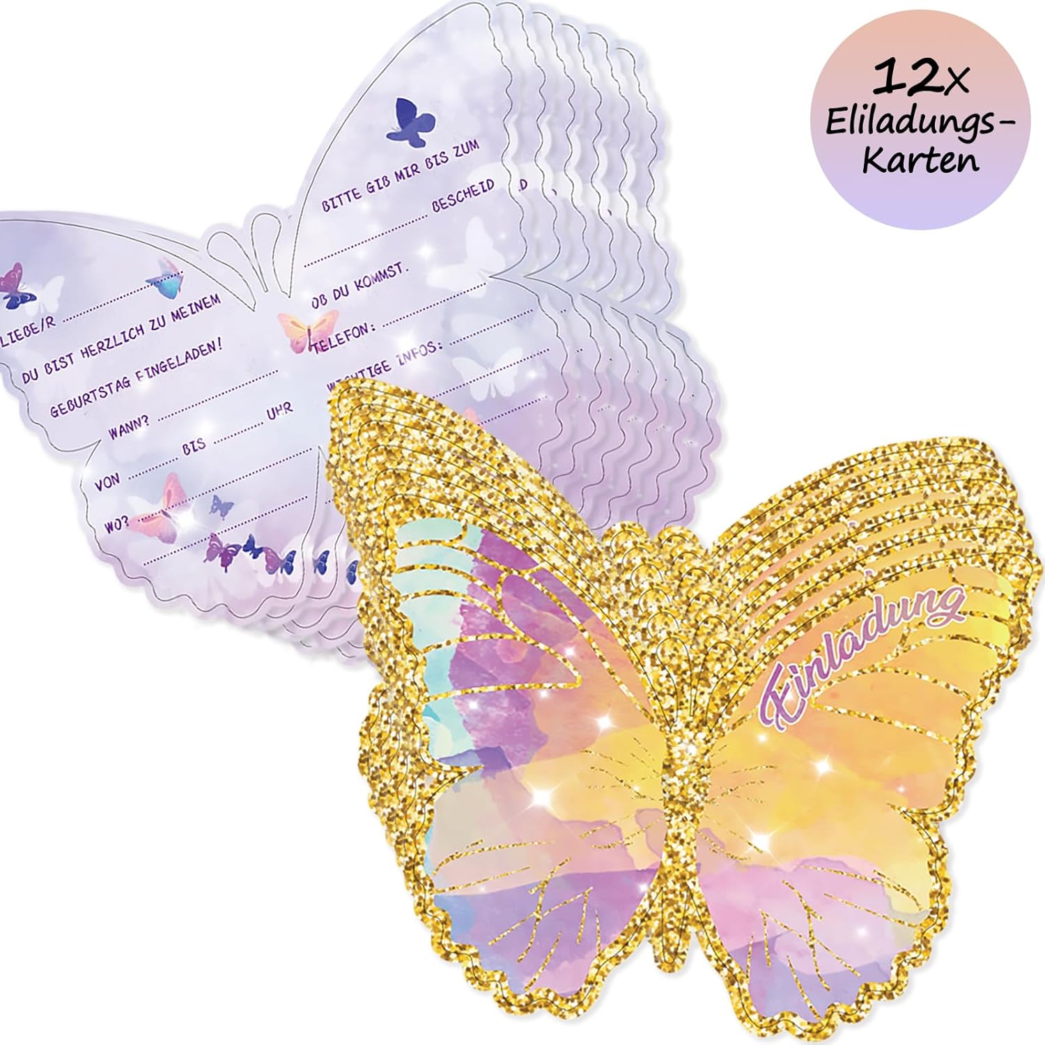 Biglietti di invito a farfalla: i nostri biglietti d'invito sono composti da 12 pezzi. Può accadere che due biglietti d'invito si incollino insieme. Basta separarli. La confezione contiene 12 biglietti d'invito con farfalle in formato 13,6 x 10,5 cm. Design perfetto: i biglietti di invito sono progettati con un vivace e carino motivo a farfalla, che può attirare l'attenzione dei bambini e regalarle una festa allegra. Facile da scrivere: i biglietti di invito sono facili e facili da usare. Alta qualità: i biglietti di invito sono realizzati in carta pesante da 300 g/m², piacevole al tatto, con colori vivaci e non si danneggia facilmente. Diverse occasioni: oltre alle feste a tema, questo biglietto di invito a farfalla può essere utilizzato in una varietà di occasioni come feste di compleanno, matrimoni, scambi regalo, regali di laurea ed eventi festivi, per trasmettere ai vostri ospiti la vostra anticipazione.