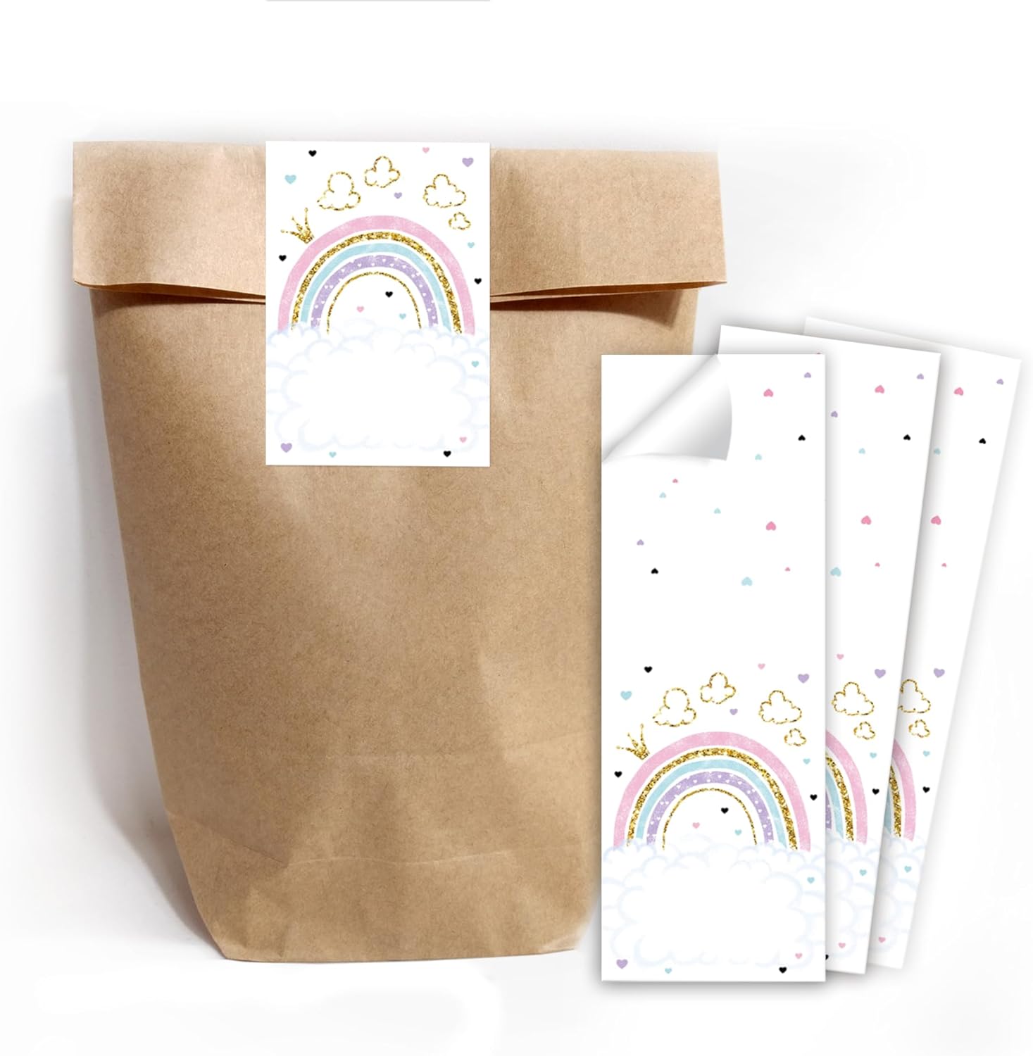 12 biglietti d'invito per il compleanno dei bambini, con 12 buste, 12 sacchetti per feste, colore naturale, 12 adesivi