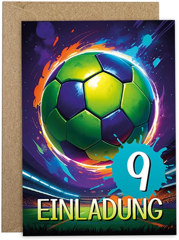 Contenuto: 12 biglietti d'invito Pratico: gli inviti sono moderni e progettati con molti dettagli. Sul retro troverete i campi prestampati da compilare. Dimensioni: i biglietti d'invito sono molto stabili, hanno formato DIN A6 (10,50 cm x 14,80 cm), stampa di alta qualità 300 g/m² e sono rivestiti con vernice UV per la finitura. Occasioni: i biglietti di invito sono molto adatti per una festa di compleanno o una festa di compleanno. È possibile utilizzare questi biglietti anche come inviti per battesimo, festa a tema, feste al cinema o feste in piscina. HAI BISOGNO DI UN ALTRO NUMERO? : da noi troverete questi graziosi inviti anche in set da 6, 8 o 10 pezzi. Altri motivi: nel nostro negozio troverete anche molti altri motivi di inviti, come lama, cavalli, calcio, cinema, piscina, bowling, salto. Prodotto in Germania: i biglietti sono stati prodotti in una tipografia tedesca.