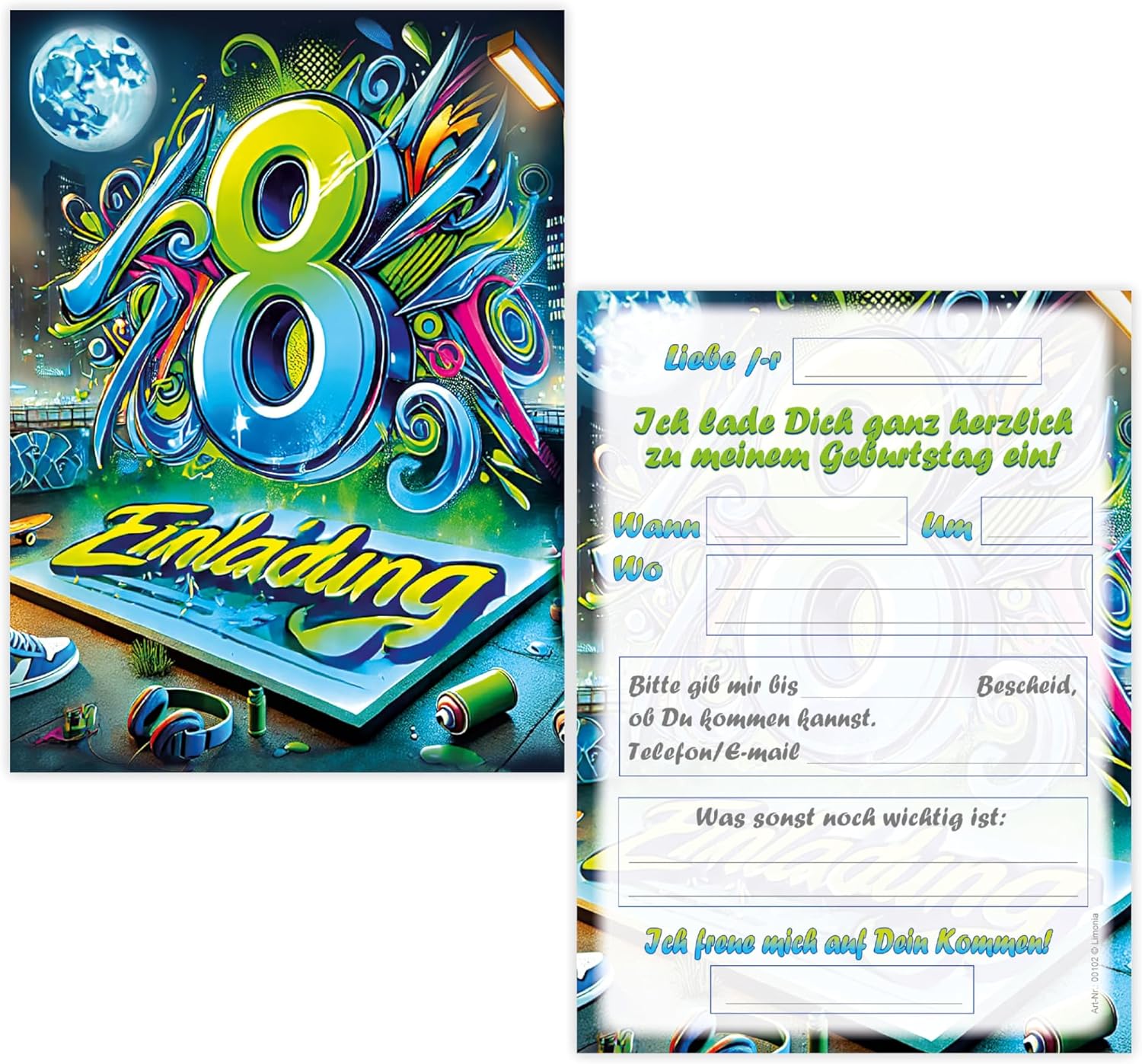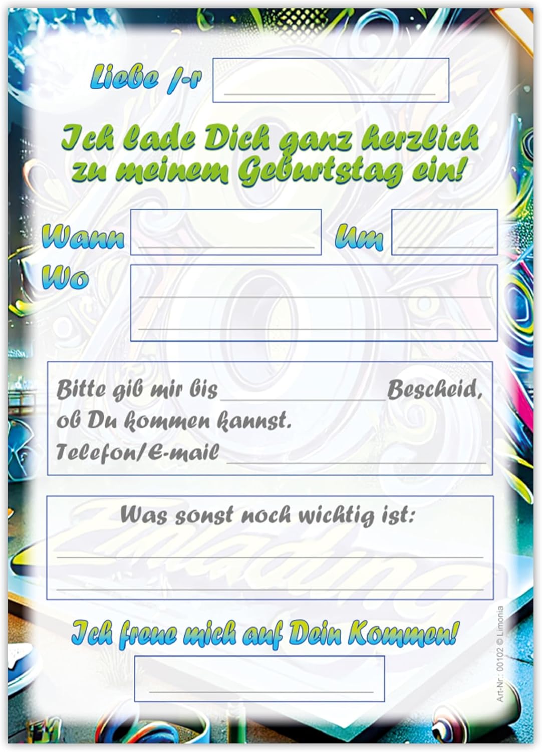 CONTENUTO POPOLARE: 12 Biglietti d'invito. Formato ideale: il biglietto d'invito misura 10,5 x 14,8 cm/DIN A6. Pratico e maneggevole. Alta qualità: stampa di alta qualità 300 g/m², rifinita con vernice UV lucida. Prodotto in Germania Design e personalizzazione: i biglietti d'invito hanno campi prestampati sul retro da compilare e personalizzare. Disponibile anche in altre quantità e in altri motivi popolari per bambini progettati individualmente nel nostro negozio.