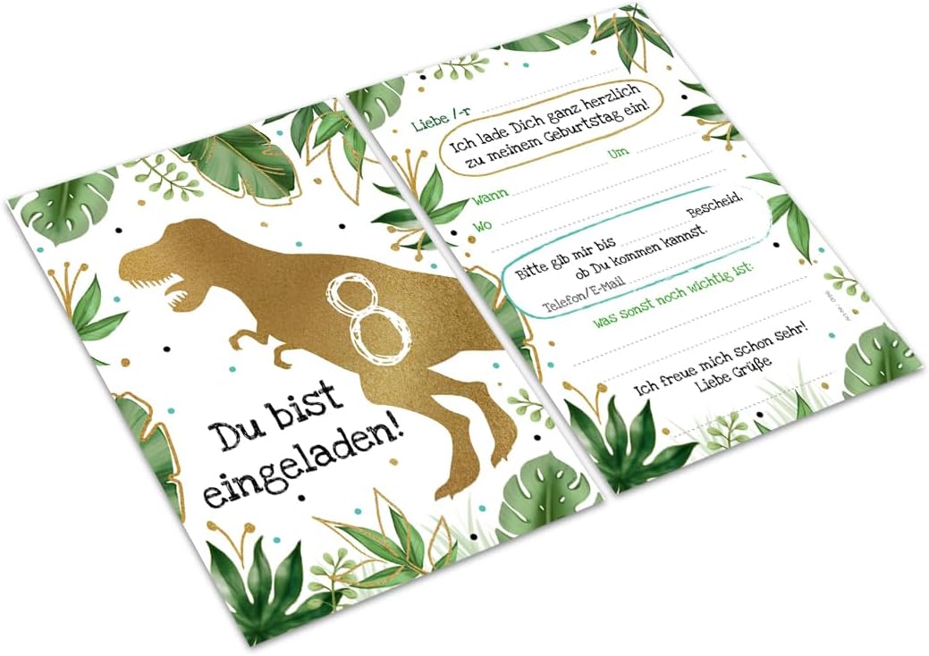 12 biglietti d'invito per l'8° compleanno dei bambini, motivo: dinosauro, inviti per l'8° compleanno dei ragazzi