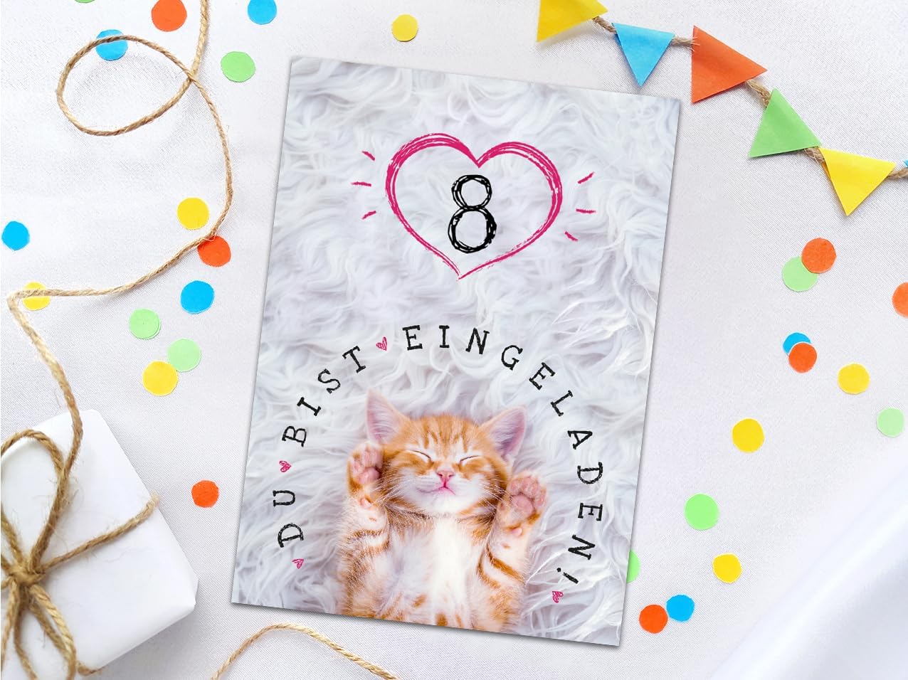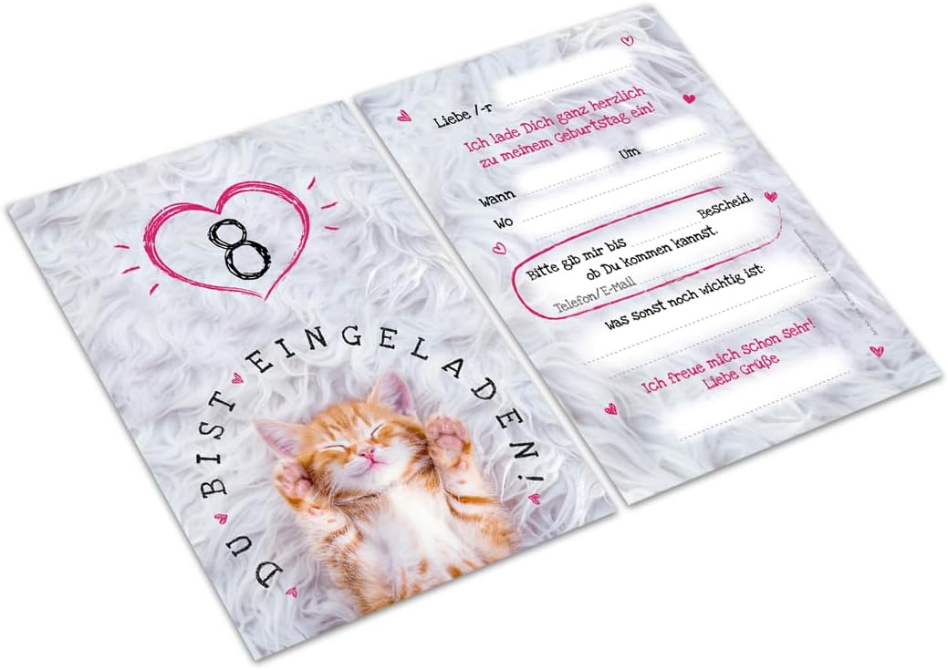 12 biglietti d'invito per l'8° compleanno dei bambini, per ragazze, gatti, inviti di compleanno