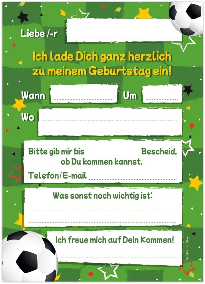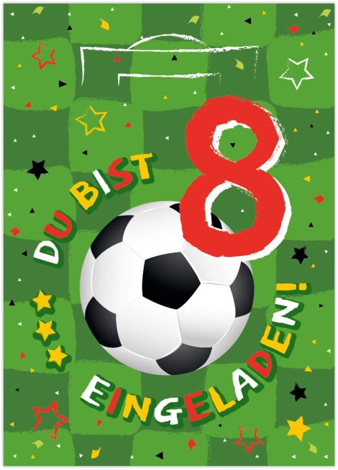 12 biglietti d'invito per l'8° compleanno, invito, compleanno per bambini, calcio, con 12 buste, 12 sacchetti/petrolio, 12 adesivi, 12 segnalibri, 12 blocchi, 12 navi