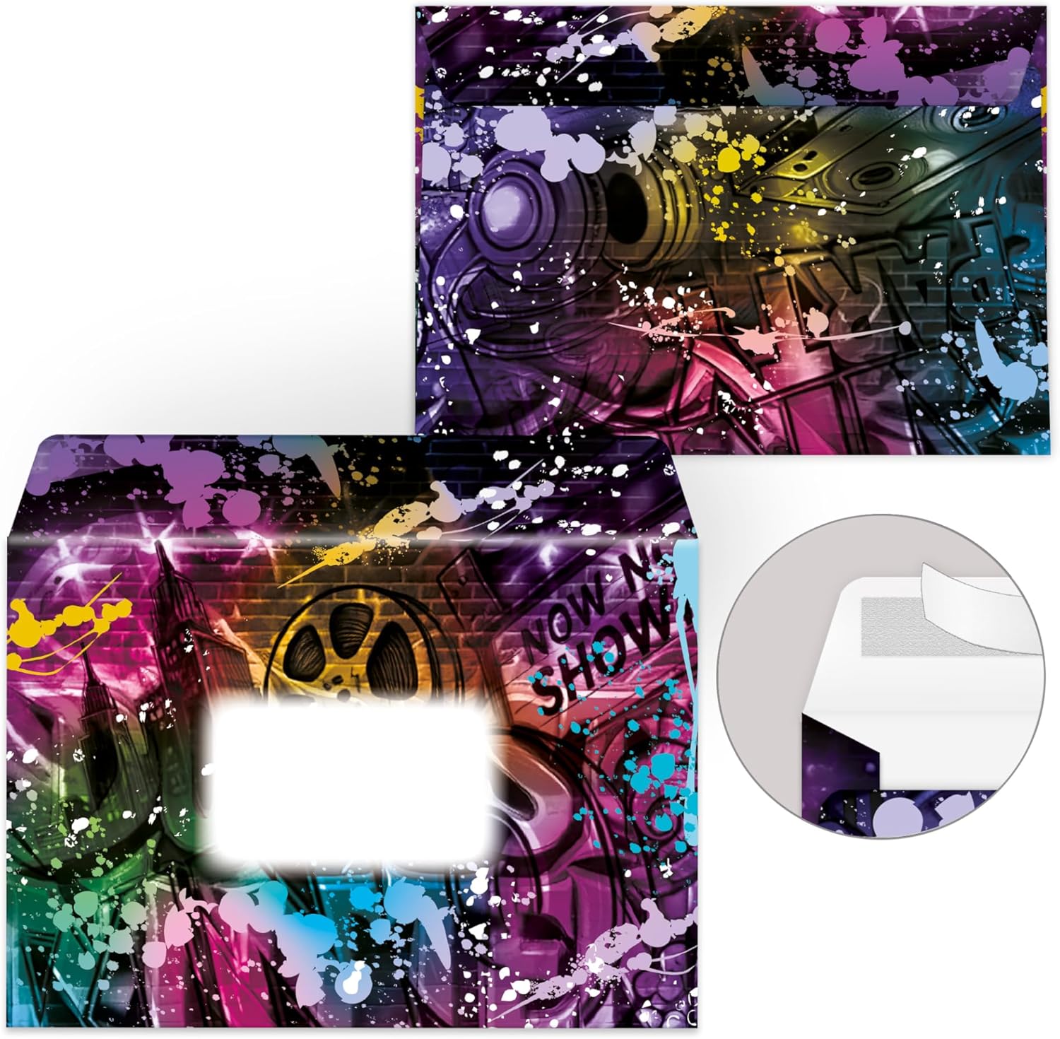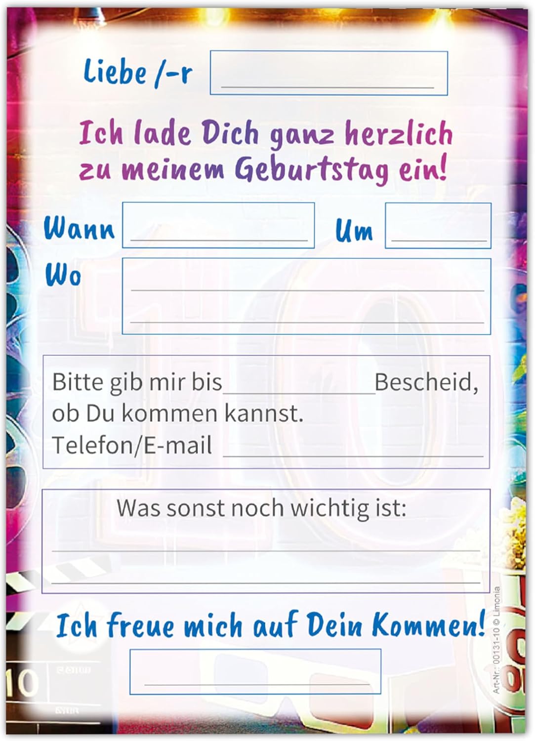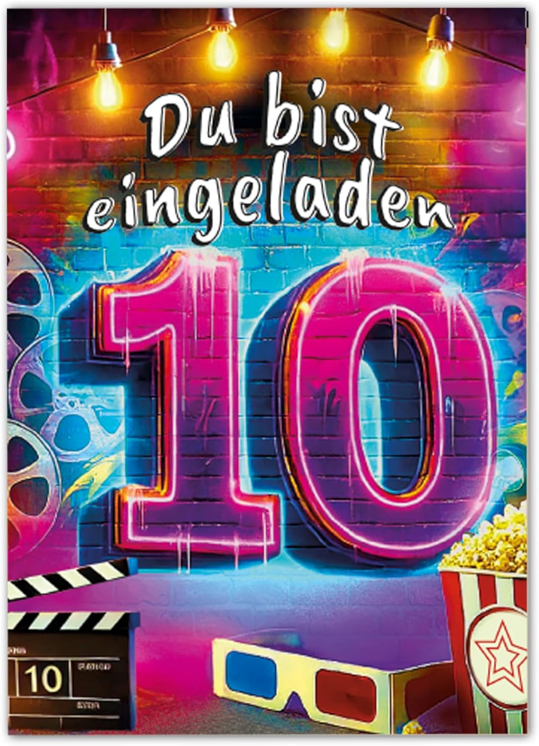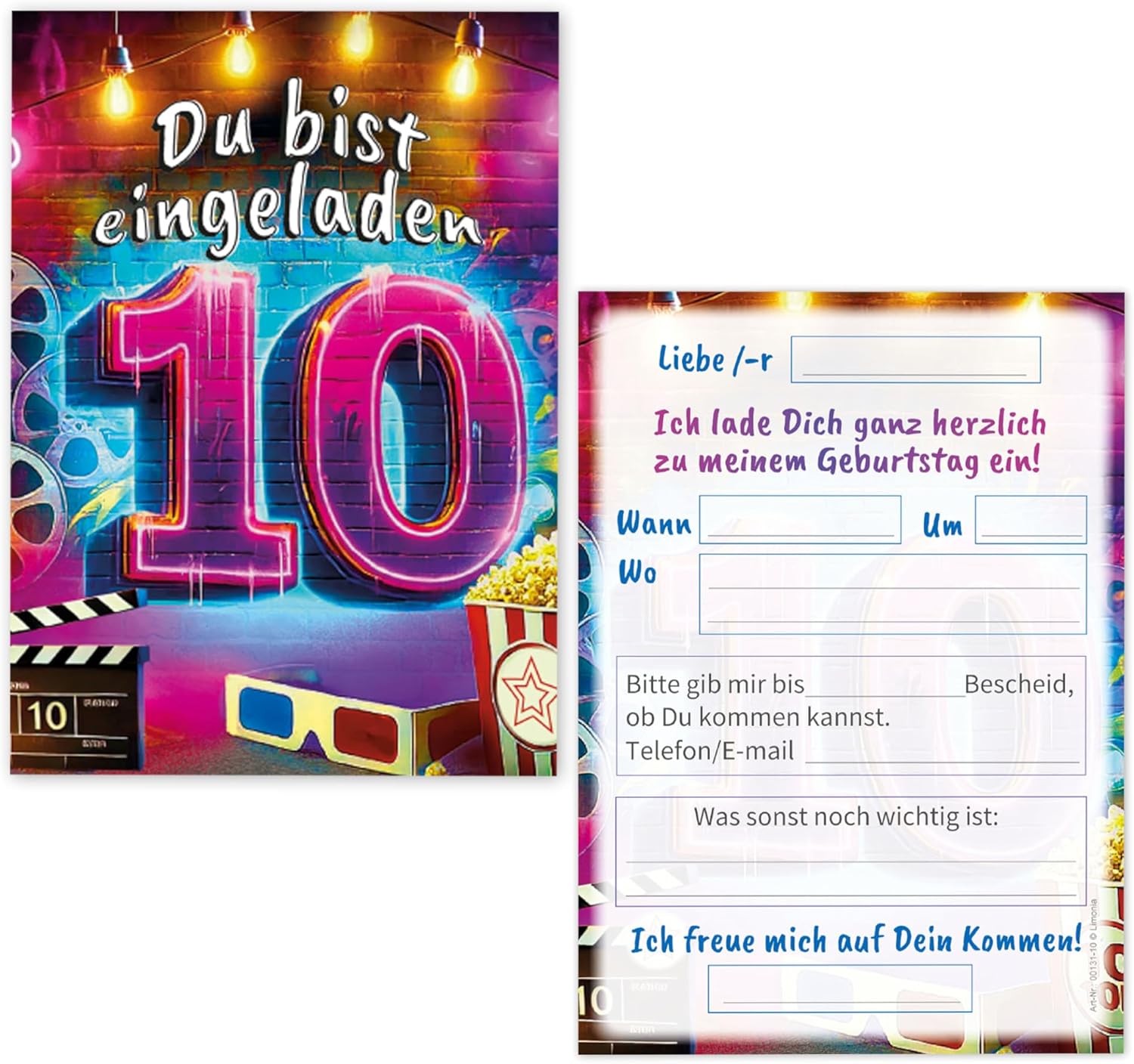 12 biglietti di invito con 12 buste per il 10° compleanno, cinema cinema graffiti street art, set di invito per ragazze, bambini, ragazzi, ragazzi, ragazzi e ragazzi