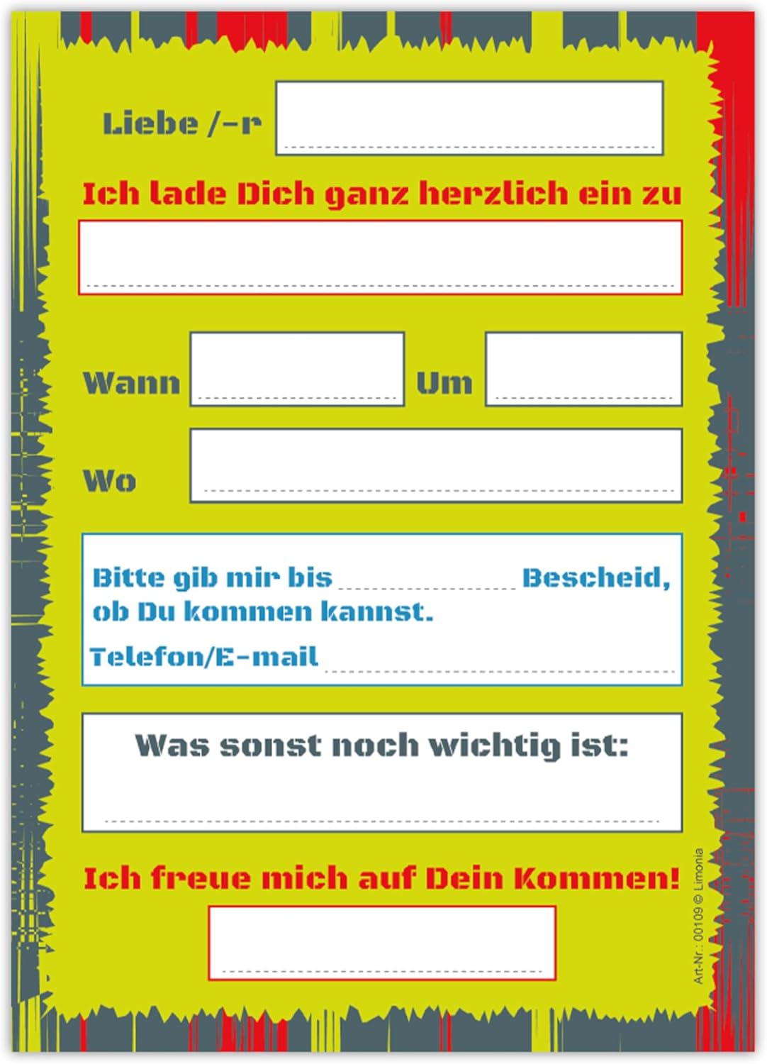 Contenuto popolare: 12 biglietti d'invito e 12 buste in set. Formato ideale: il biglietto d'invito misura 10,5 x 14,8 cm/DIN A6, la busta misura 11,4 x 16,2 cm/DIN C6 (adesivo con striscia adesiva). Qualità top: il biglietto d'invito: 300 g/m² stampa di alta qualità, rifinito con vernice UV. La busta: 80 g/m² con stampa di alta qualità ed è adesiva (con striscia adesiva). Prodotto in Germania Design e personalizzazione: i biglietti d'invito hanno campi prestampati sul retro da compilare e personalizzare.