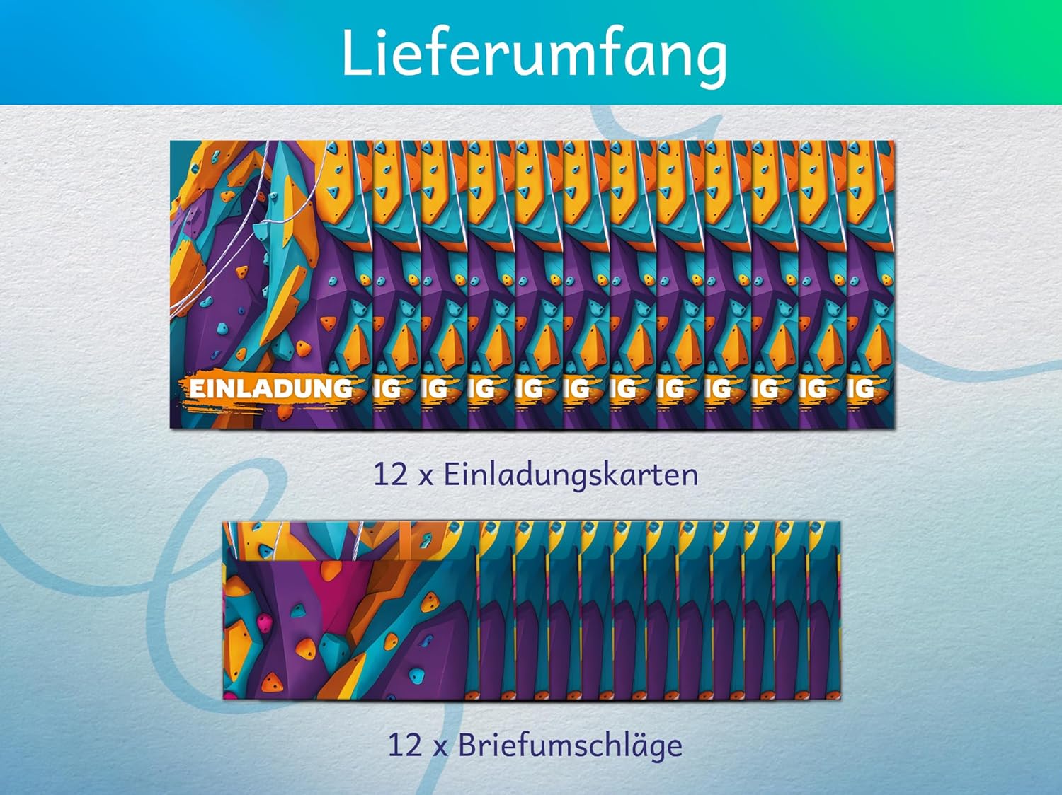 Contenuto: 12 biglietti d'invito + 12 buste Pratico: gli inviti sono moderni e progettati con molti dettagli. Sul retro troverete i campi prestampati da compilare. Biglietti: i biglietti d'invito sono molto robusti, hanno formato A6 (10,50 cm x 14,80 cm), stampa di alta qualità 300 g/m e sono rivestiti con vernice UV per la finitura. Buste autoadesive: la busta ha una dimensione di 11,40 cm x 16,20 cm, stampa da 80 g/m ed è adesiva (con striscia adesiva). Occasioni: i biglietti di invito sono ideali per feste di compleanno. HAI BISOGNO DI UN ALTRO NUMERO? : nelle varianti troverete questi graziosi inviti anche in set da 6, 8 o 10 pezzi. Altri motivi: nel nostro negozio troverete anche molti altri motivi di inviti, come lama, cavalli, calcio, cinema, piscina, bowling, salto. Prodotto in Germania: i biglietti e le buste sono stati prodotti in una tipografia tedesca.