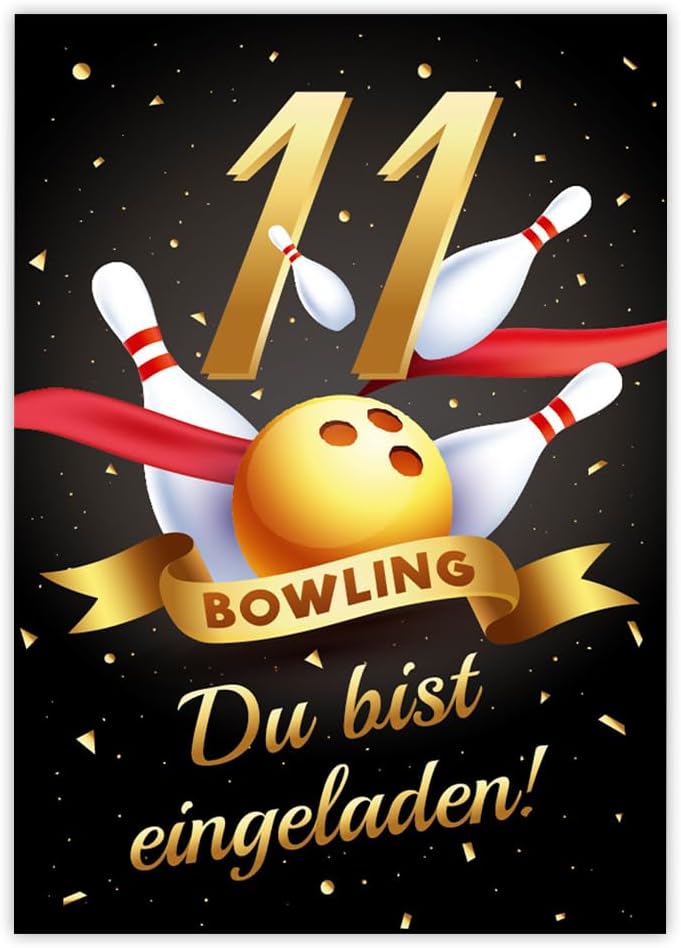 12 biglietti di invito, incl. 12 buste per il 11° compleanno dei bambini, bowling, coni per ragazze, ragazzi, inviti, undicesimo compleanno per bambini