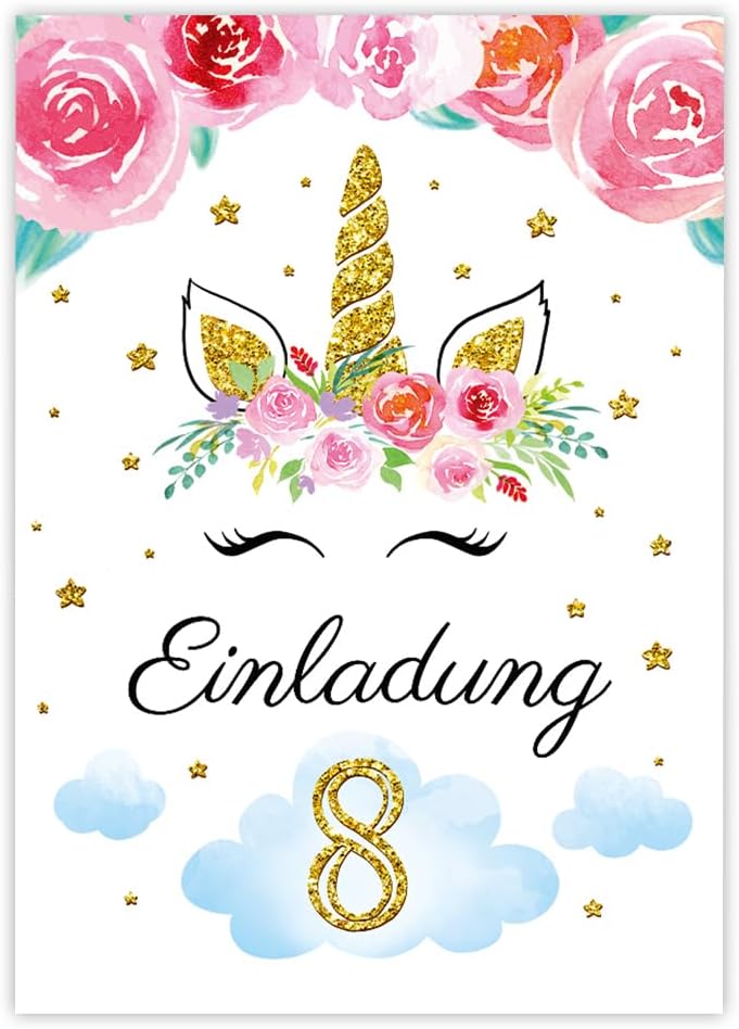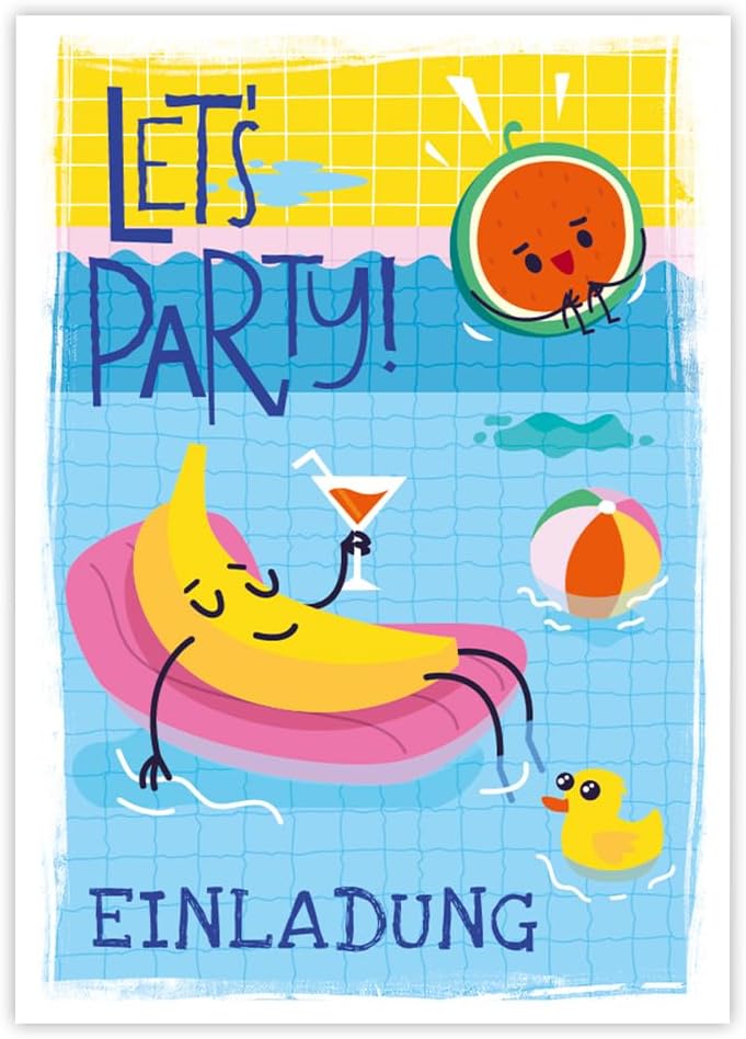 Contenuto: 12 biglietti d'invito + 12 buste Pratico: gli inviti sono moderni e progettati con molti dettagli. Sul retro troverete i campi prestampati da compilare. Biglietti: i biglietti d'invito sono molto robusti, hanno formato A6 (10,50 cm x 14,80 cm), stampa di alta qualità 300 g/m e sono rivestiti con vernice UV per la finitura. Buste autoadesive: la busta ha una dimensione di 11,40 cm x 16,20 cm, stampa da 80 g/m ed è adesiva (con striscia adesiva). Occasioni: i biglietti di invito sono molto adatti per una festa di compleanno o una festa di compleanno. È possibile utilizzare questi biglietti anche come inviti per battesimi, feste a tema, feste al cinema o feste in piscina. HAI BISOGNO DI UN ALTRO NUMERO? : da noi troverete anche biglietti e buste in set da 6, 8 o 10 pezzi. Altri motivi: nel nostro negozio troverete anche molti altri motivi di inviti, come lama, cavalli, calcio, cinema, piscina, bowling, salto. Prodotto in Germania: i biglietti e le buste sono stati prodotti in una tipografia tedesca.