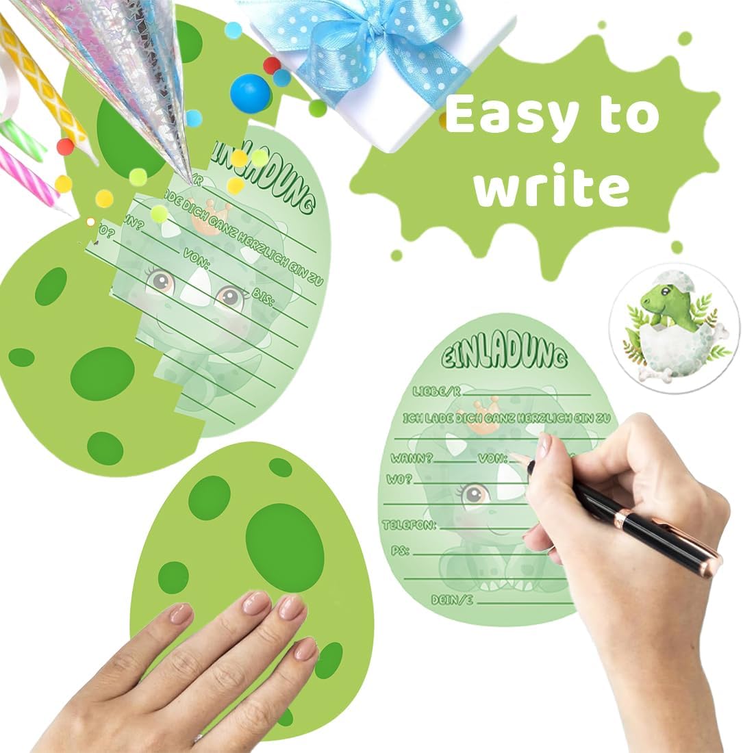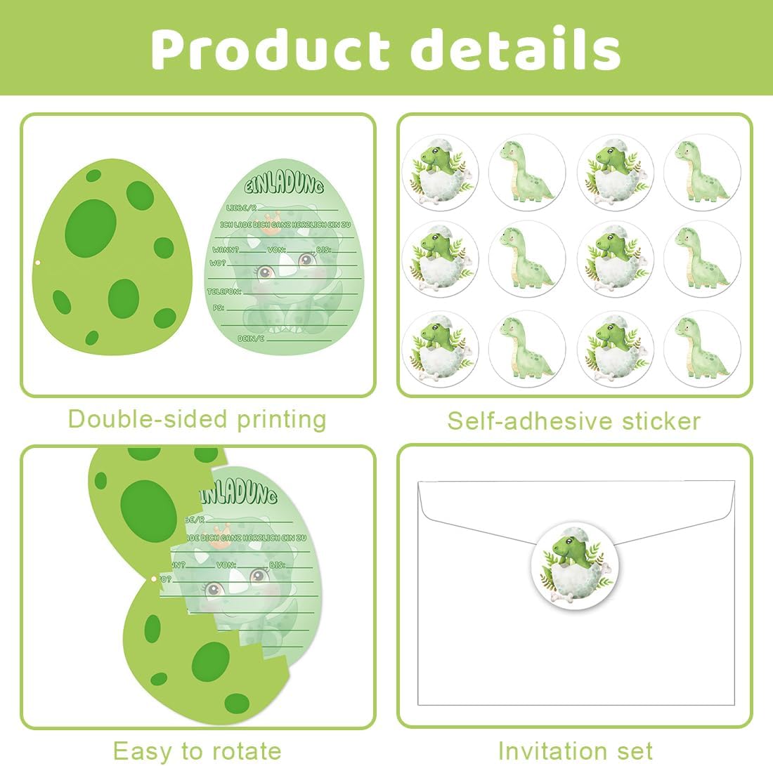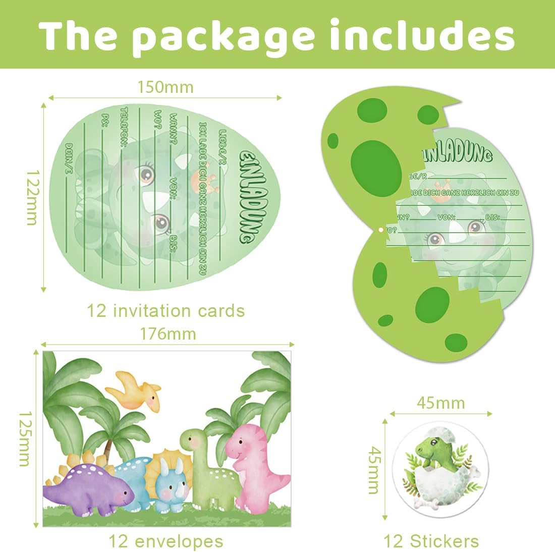【Materiale di alta qualità】I biglietti d'invito sono realizzati in carta di alta qualità. Sono belli, resistenti e possono aggiungere un tocco di colore alle occasioni speciali. È confortevole, ha colori vivaci, non si rovina facilmente e può aggiungere brillantezza alla tua festa di compleanno. 【Set di biglietti d'invito per il compleanno dei bambini a tema dinosauri】Riceverai 12 biglietti d'invito a tema dinosauri, 12 buste a tema dinosauri e 12 adesivi per buste. Perfetto per le feste di compleanno dei bambini. Invita subito i tuoi ospiti alla festa di compleanno a tema dinosauri! 【Design innovativo】I biglietti d'invito adottano design vivaci, che possono attirare l'attenzione dei bambini e regalare loro un'esperienza di festa di compleanno felice. Ti fanno brillare gli occhi e pregustare i festeggiamenti imminenti. 【Facile da usare】L'interno del biglietto offre ampio spazio per il testo dell'invito personale e i dettagli della celebrazione. Questi adorabili biglietti d'invito a forma di uova di dinosauro sono facili da compilare e perfetti per il compleanno di un bambino. Invita i tuoi ospiti a una festa di compleanno a tema dinosauri. 【Ampia applicazione】Questi graziosi biglietti d'invito a tema dinosauro hanno colori vivaci e graziosi disegni che i bambini adoreranno, il che li rende un'ottima scelta per feste di compleanno per bambini, feste di compleanno a tema dinosauri, feste in giardino, feste a tema e feste estive.