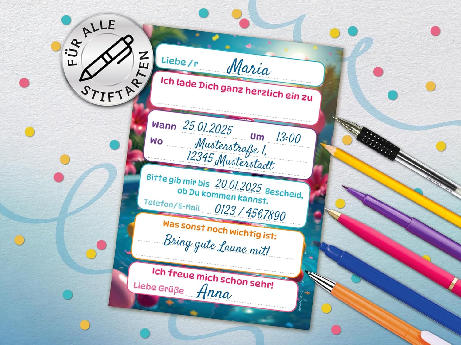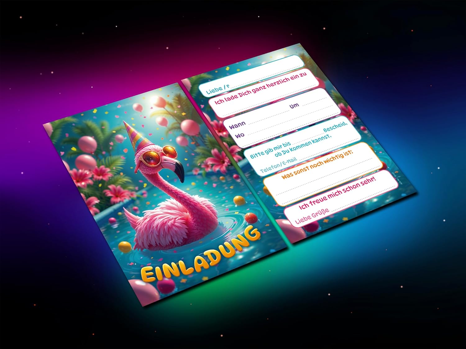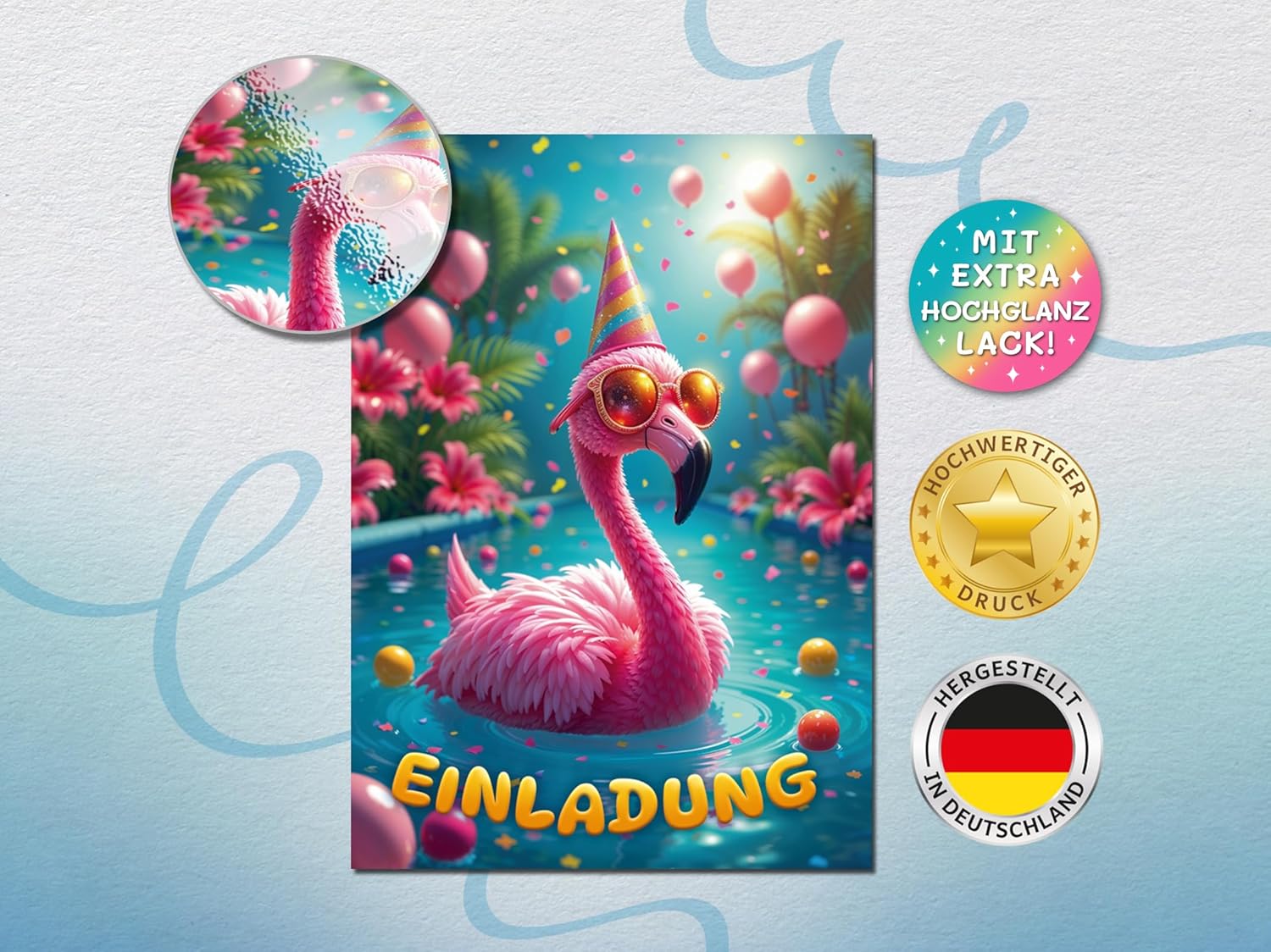 Contenuto: 12 biglietti d'invito Pratico: gli inviti sono moderni e progettati con molti dettagli. Sul retro troverete i campi prestampati da compilare. Dimensioni: i biglietti d'invito sono molto stabili, hanno formato DIN A6 (10,50 cm x 14,80 cm), stampa di alta qualità 300 g/m² e sono rivestiti con vernice UV per la finitura. Occasioni: gli inviti sono ideali per feste di compleanno. HAI BISOGNO DI UN ALTRO NUMERO? : da noi troverete questi graziosi inviti anche in set da 6, 8 o 10 pezzi. Altri motivi: nel nostro negozio troverete anche molti altri motivi di inviti, come lama, cavalli, calcio, cinema laser, bowling, jump. Prodotto in Germania: i biglietti sono stati prodotti in una tipografia tedesca.