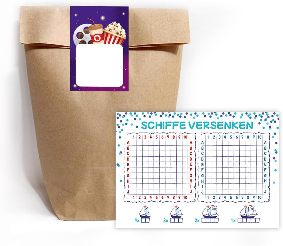 Contenuto: 12 biglietti d'invito, 12 buste, 12 navi, 12 sacchetti/naturale con 12 adesivi. Biglietti e buste: i biglietti d'invito sono moderni e progettati con molti dettagli. Sul retro troverete i campi prestampati da compilare. Il biglietto ha una dimensione di 10,50 cm x 14,80 cm (stampa 300 g/m). La busta ha una dimensione di 11,40 cm x 16,20 cm (stampa di 80 g/m) e sono adesive (con striscia adesiva). Sacchetti con adesivo: i sacchetti di carta hanno una dimensione di 14 cm x 22 cm. Gli adesivi hanno una dimensione di 5,2 x 14,8 cm. I sacchetti sono ideali da riempire con piccoli regalini per feste di compleanno per bambini. Svasare le navi: i blocchi hanno una dimensione di 14,80 x 10,5 cm (DIN A6) e 25 fogli. Prodotto in Germania: biglietti, buste, adesivi, navi e sacchetti sono prodotti in Germania.