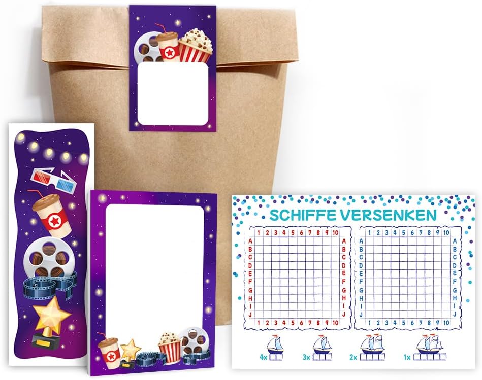 12 biglietti di invito per il 10° compleanno per bambini, invito compleanno e ragazze, cinema cinema, incl. 12 buste, 12 sacchetti/naturale, 12 adesivi, 12 segnalibri, 12 blocchi, 12 navi