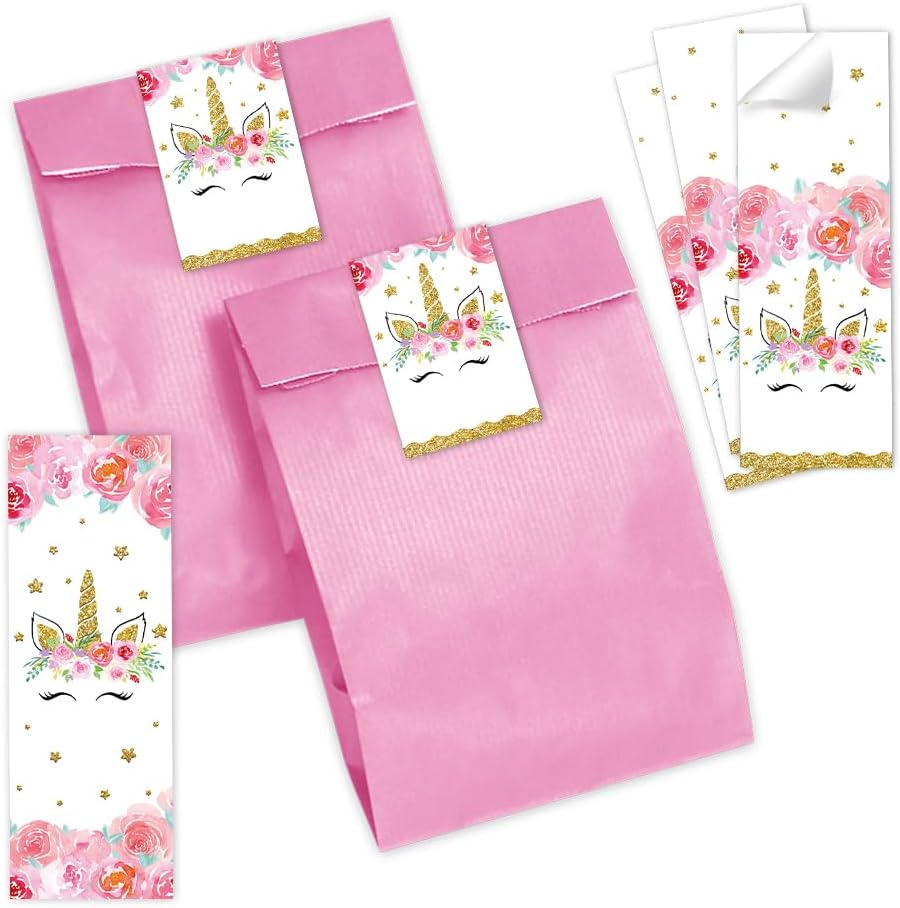 12 biglietti di invito per il 7° compleanno dei bambini, motivo: unicorno, invito, settimo compleanno, con 12 buste, 12 sacchetti per feste, rosa, 12 adesivi, 12 segnalibri