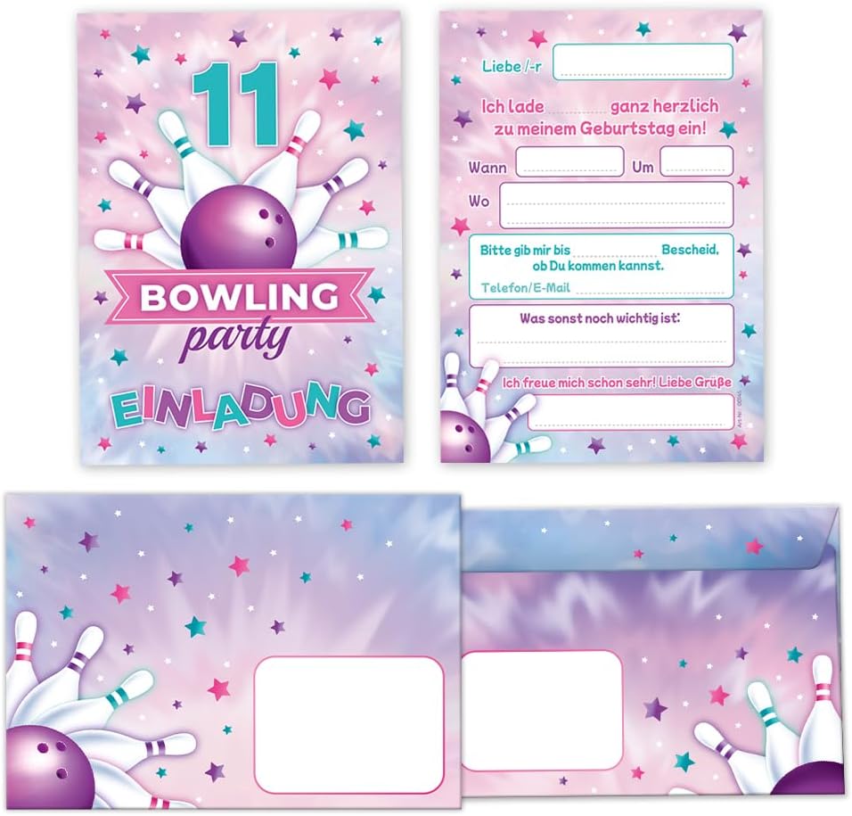 Contenuto: 12 biglietti d'invito + 12 buste Pratico: gli inviti sono moderni e progettati con molti dettagli. Sul retro troverete i campi prestampati da compilare. Biglietti: i biglietti d'invito sono molto robusti, hanno formato A6 (10,50 cm x 14,80 cm), stampa di alta qualità 300 g/m e sono rivestiti con vernice UV per la finitura. Buste autoadesive: la busta ha una dimensione di 11,40 cm x 16,20 cm, stampa da 80 g/m ed è adesiva (con striscia adesiva). Occasioni: i biglietti di invito sono molto adatti per una festa di compleanno o una festa di compleanno. È possibile utilizzare questi biglietti anche come inviti per battesimi, feste a tema, feste al cinema o feste in piscina. HAI BISOGNO DI UN ALTRO NUMERO? : da noi troverete anche biglietti e buste in set da 6, 8 o 10 pezzi. Altri motivi: nel nostro negozio troverete anche molti altri motivi di inviti, come lama, cavalli, calcio, cinema, piscina, bowling, salto. Prodotto in Germania: i biglietti e le buste sono stati prodotti in una tipografia tedesca.