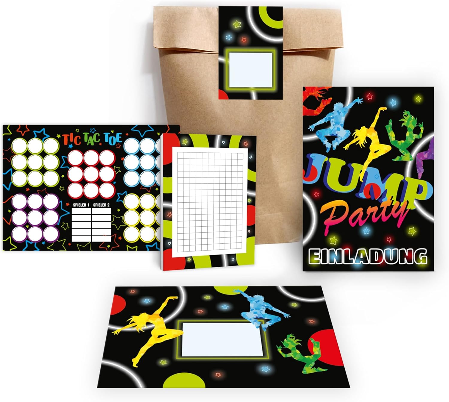 Contenuto: 12 biglietti d'invito + 12 buste + 12 sacchetti per feste/naturale + 12 adesivi Pratico: con questo set non avrete solo inviti con buste abbinate, ma anche sacchetti regalo per regalini e fantastici adesivi regalo da scrivere. Biglietti: gli inviti sono moderni e progettati con molti dettagli. Sul retro troverete i campi prestampati da compilare. I biglietti d'invito sono molto robusti, hanno formato A6 (10,50 cm x 14,80 cm), stampa di immagini di alta qualità da 300 g/m e sono rivestiti con vernice UV per la finitura. Buste autoadesive: la busta ha una dimensione di 11,40 cm x 16,20 cm, stampa da 80 g/m² ed è adesiva (con striscia adesiva). Sacchetti regalo: i sacchetti di carta hanno una dimensione di 14 x 22 x 5 cm. I sacchetti per feste (sacchetti a fondo incrociato) sono molto adatti per confezionare piccole bomboniere o caramelle per gli ospiti. Adesivo: gli adesivi hanno una dimensione di 5,2 x 14,8 cm. Tu o il tuo bambino potete scrivere sugli adesivi "Grazie", "bello che tu aspetta!" o scrivere il nome dell'ospite. Occasione: il set per feste è molto adatto per una festa di compleanno o una festa di compleanno. È possibile utilizzare questi biglietti anche come inviti per battesimi, feste a tema, feste al cinema o in piscina.
