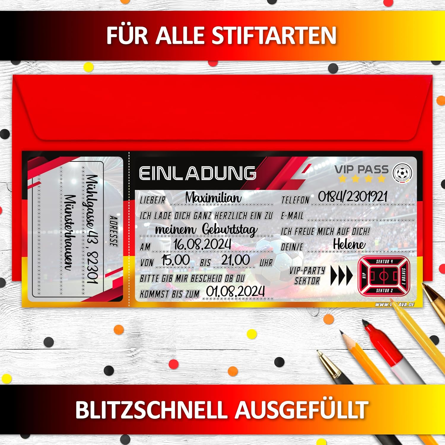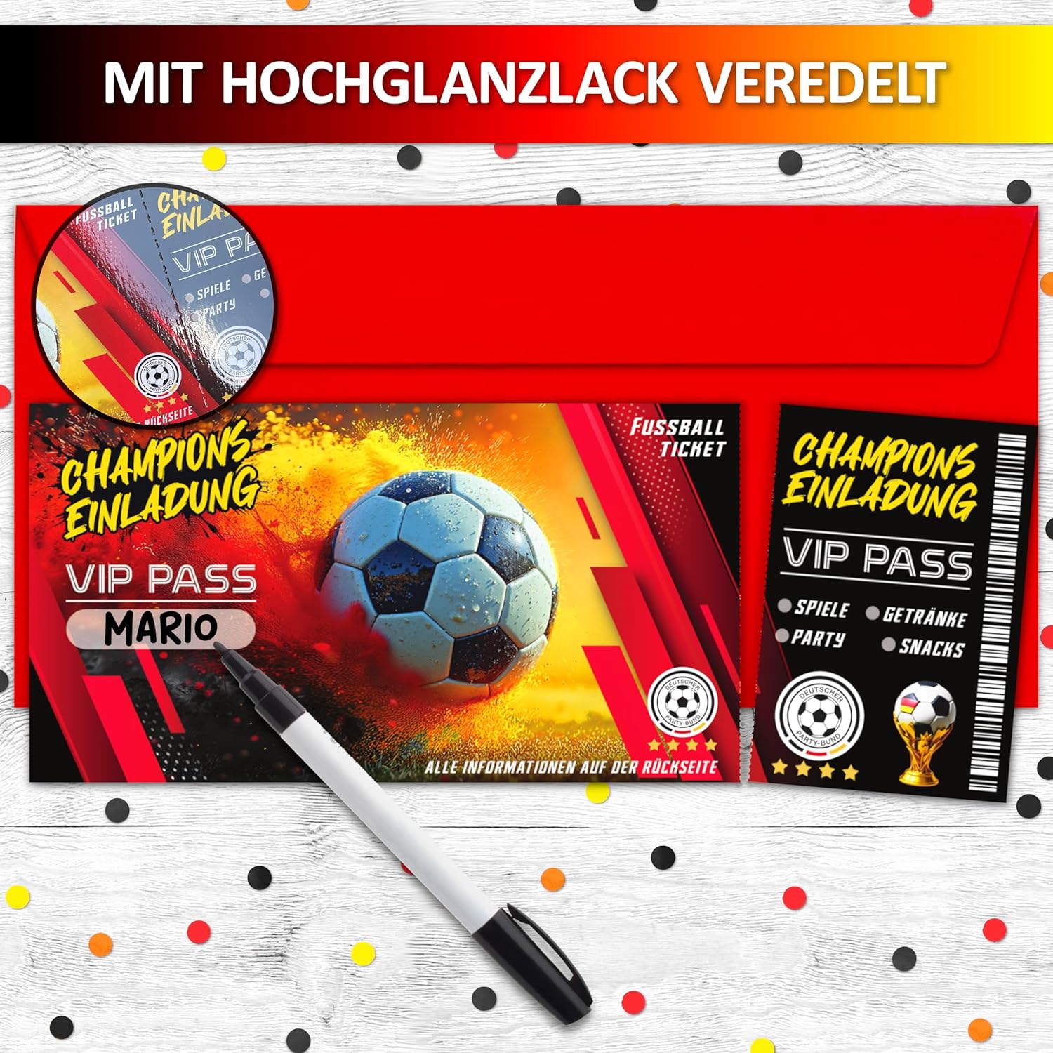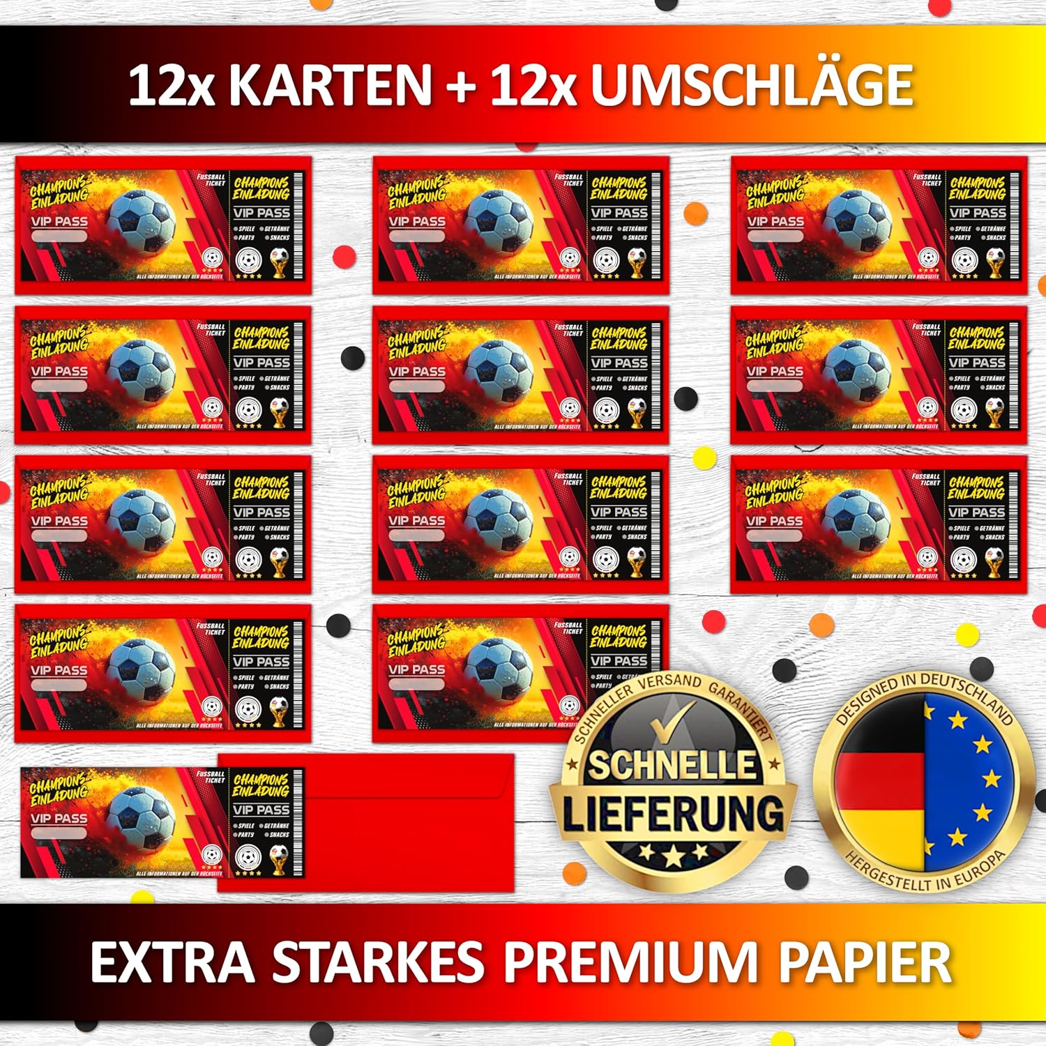 Versatile: che si tratti di feste di compleanno per bambini, feste in giardino, partite di calcio, feste a tema, feste estive o torneo, i biglietti d'ingresso di calcio sono l'invito per ragazzi, amici e appassionati di calcio Unico: i nostri biglietti d'invito per il compleanno di bambini e bambine sono l'accessorio ideale per ogni festa di compleanno per bambini – facile da distribuire a scuola o in associazione Vera qualità: i nostri biglietti d'invito sono prodotti in Germania: gli inviti di compleanno in carta riciclabile da 350 g di alta qualità sono rifiniti con speciali processi di stampa Formato ottimale: i biglietti d'invito per feste con 13,5 cm di diametro offrono spazio per tutte le informazioni importanti e sono scrivibili con tutte le penne comuni: sono il ricordo dell'infanzia per ogni amico Il biglietto d'invito perfetto: con i 12 inviti per feste a tema biglietto + 12 buste rosse, tutti gli ospiti potranno partecipare alla festa di compleanno