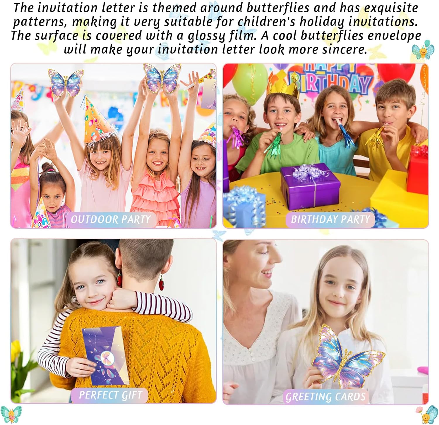 Biglietti d'invito a farfalla: la nostra confezione contiene 12 biglietti d'invito con farfalle, 12 adesivi e 12 buste. Ogni biglietto è progettato con grande attenzione ai dettagli e cattura l'essenza delle farfalle in tutto il suo splendore. Materiali di alta qualità: i biglietti d'invito a farfalla sono realizzati in carta di alta qualità, robusta e durevole, stampa chiara e un bell'aspetto sorprenderanno le persone che ricevono il biglietto d'invito. Design unico: i biglietti di invito sono progettati con un vivace e simpatico motivo a farfalla, che può attirare l'attenzione dei bambini e regalarli un'esperienza di festa allegra. Facile da usare: il biglietto d'invito ha delle linee vuote, in modo da poter scrivere solo le informazioni più importanti e invitare i tuoi amici alla tua festa. Questo biglietto d'invito è una buona scelta per voi. Adatto per diverse occasioni: oltre alle feste a tema, questo biglietto d'invito a farfalla può essere utilizzato in una varietà di occasioni, come feste di compleanno, matrimoni, lauree ed eventi festivi.