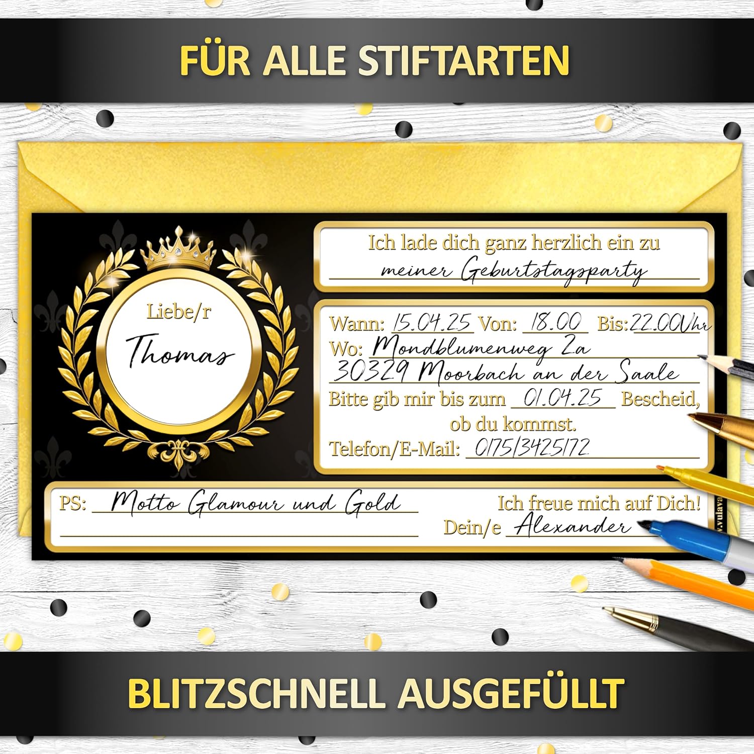 Versatile: che si tratti di una festa di matrimonio, addio al celibato, festa di anniversario per il 18° compleanno, festa a tema o festa di compleanno per bambini, i biglietti VIP sono l'invito per ragazzi, amici e ospiti speciali Unici: i nostri biglietti d'invito VIP di alta qualità per ragazze e ragazzi sono l'accessorio per feste di compleanno e per ogni festa di compleanno; da distribuire semplicemente come regalino nella cerchia degli amici o degli attori Alta qualità: i nostri biglietti d'invito sono realizzati in Europa – su carta premium riciclabile da 350 g con stampa speciale per colori brillanti e ottima sensazione al tatto Formato ottimale: i biglietti d'invito per feste da 21 cm x 10,5 cm offrono spazio per tutte le informazioni importanti e sono scrivibili con tutte le penne, sono il ricordo per ogni ospite e amico Il biglietto d'invito perfetto: con i 12 eleganti inviti per feste + 12 buste in stile VIP e in formato cartoline, tutti gli ospiti potranno partecipare alla vostra festa di compleanno