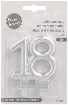 Caratteristiche del prodotto: candela per l'anniversario '18' in paraffina di alta qualità in elegante argento. Altezza: 7 cm – ideale per torte e dolci. Durata: circa 8 minuti – perfetta per brevi momenti festivi con robusto supporto per una maggiore stabilità. Bruciatura pulita e silenziosa. Elegante candela in argento per il 18° compleanno o anniversario. Dai alla tua festa un tocco di lusso con la candela di anniversario color argento '18'. Questa candela alta 7 cm è ideale per occasioni speciali come il 18° compleanno o celebrare un anniversario con stile. Realizzata in paraffina di alta qualità, la candela brucia per circa 8 minuti e crea un'atmosfera festosa. Il supporto integrato consente un posizionamento sicuro su torte e torte, in modo da poter festeggiare senza preoccupazioni. Suggerimento: il colore argento della candela garantisce un tocco elegante a ogni festa e si adatta perfettamente a diversi stili di decorazione. Rendi il tuo giorno speciale indimenticabile e decora con questa candela di anniversario Caratteristiche principali: