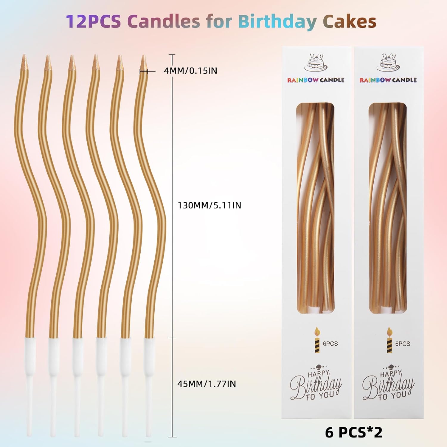 ★ 【ASPETTO SQUISITO】 La candela per torta a spirale con design a spirale aggiunge più raffinatezza. Le candeline metalliche per cupcake daranno alla tua festa un effetto elegante e un'atmosfera romantica. ★【SOTTILE E LUNGA】Ci sono due scatole di candeline sottili per torta con supporti (12 pezzi in totale) con 16,8 cm/6,61 di altezza e il tempo di combustione è di circa 7 minuti, con cui puoi cantare diversi giri di buon compleanno. ★【COLORI BRILLANTI】Le candeline di compleanno curve sono adatte sia per ragazzi che per ragazze, donne e uomini. I colori delle candeline di compleanno con supporto sono molto luminosi e hanno una fiamma molto bella, che può creare un'atmosfera romantica. ★ 【MATERIALE SICURO】 Le nostre candeline per torta di compleanno sono realizzate in cera senza fumo e atossica, facile da inserire e accendere. Non fanno fumo e non gocciolano. Puoi essere sicuro di metterli sulla tua torta di compleanno. ★ 【AMPIO USO】 Le candeline di compleanno curve, lunghe e sottili, sono adatte a tutti i tipi di feste o occasioni speciali, come feste di compleanno, lavoro a maglia, baby shower, feste, ecc.