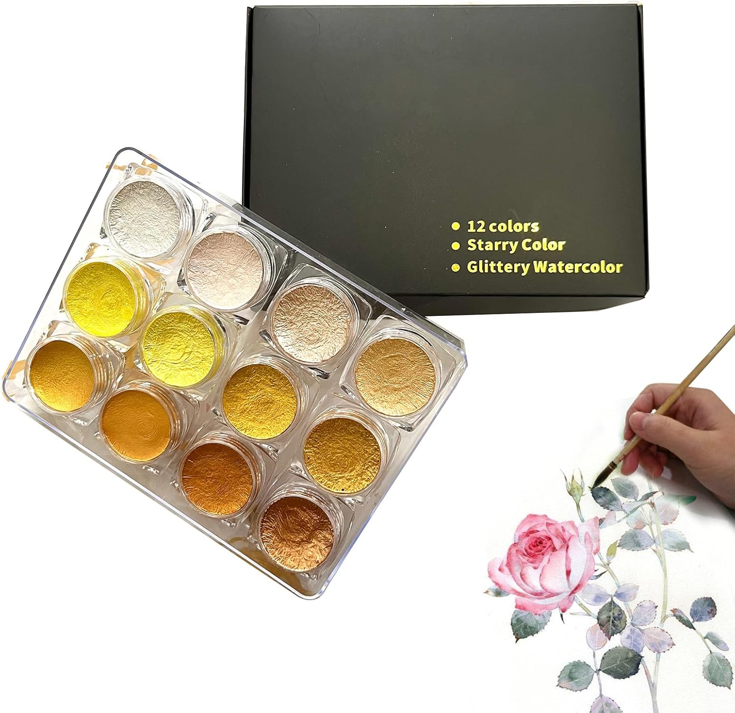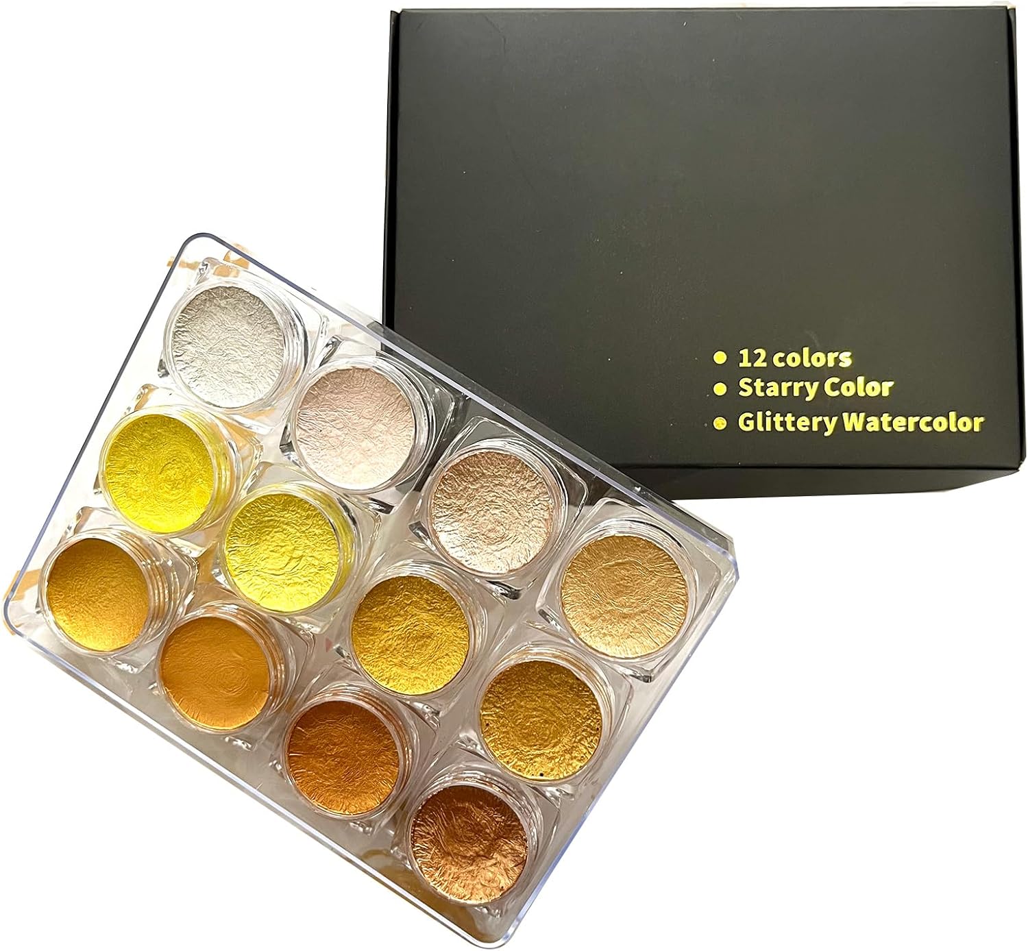 La vernice è stata macinata finemente, solubilità rapida in acqua, grande diffusione, colore uniformemente miscelato, elevata resistenza alla luce e alta saturazione. Può essere facilmente miscelato con altri colori per effetti unici pigmenti solidi acquerello, non tossici e sicuri, molto festivi, compleanni, per studenti, principianti. Molto adatto per incoraggiare la passione dei bambini all'arte e 12 colori perlescenti brillanti, la vernice ad acquerello ha un alto grado di colorazione, più brillante sotto una forte luce. Sia sulla carta bianca/nera, è molto piena di colore e fornisce un effetto brillante brillante Questi acquerelli solidi professionali sono adatti a tutti i pittori, principianti, artisti, studenti e bambini che dipingono su carta, tessuto, legno, pietra, artigianato. Grande aiuto per aggiungere e brillare le loro opere d'arte Piccole custodie per vernici individuali, tutte ben organizzate in scatola. Compatto e portatile. La sua consistenza liscia si asciuga per una finitura audace, scintillante e brillante, ed è con pennello e spugne per diversi effetti sorprendenti