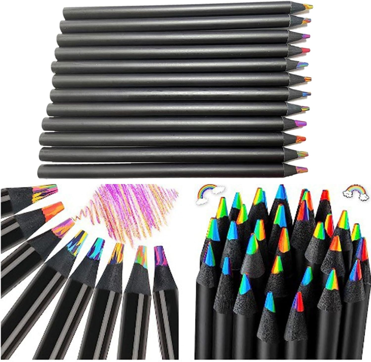 Dai loro fusti robusti e confortevoli ai loro nuclei morbidi e resistenti alla rottura, questo set di matite colorate è fatto per durare. Adotta materiali, sicuro e ideale per scrivere, disegnare e colorare forniture Matite colorate in legno, miscelazione, miscelazione e stratificazione senza intoppi per risultati professionali Queste matite colorate arcobaleno sono disponibili in una vasta gamma di colori brillanti e saturi. Ogni matita con mine colorate per una facile identificazione del colore. Vai avanti, miscelazione e stratificazione proprio come professionale Queste matite colorate scivolano senza intoppi sulla carta, si fondono magnificamente e si sovrappongono per poster, scrapbooking, libri da colorare, prendere appunti, dettagli di disegno, graffiti, progetti artistici scolastici Matite colorate professionali per pittori, artisti, principianti, studenti, bambini, adulti. per il ritorno a scuola, ricompensa di classe, regalo di compleanno, regalo di Capodanno, regalo per la festa dei bambini, forniture per feste di Natale