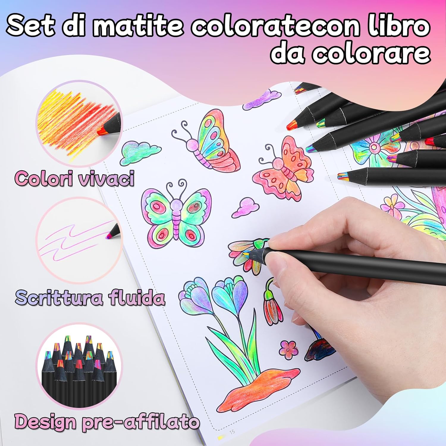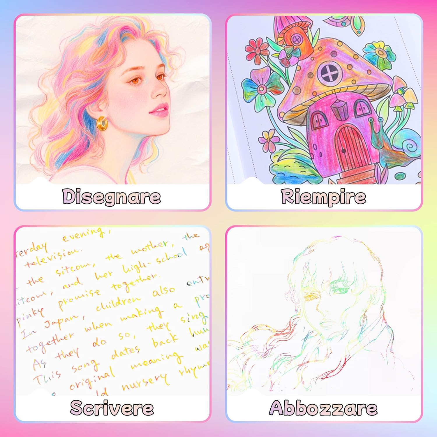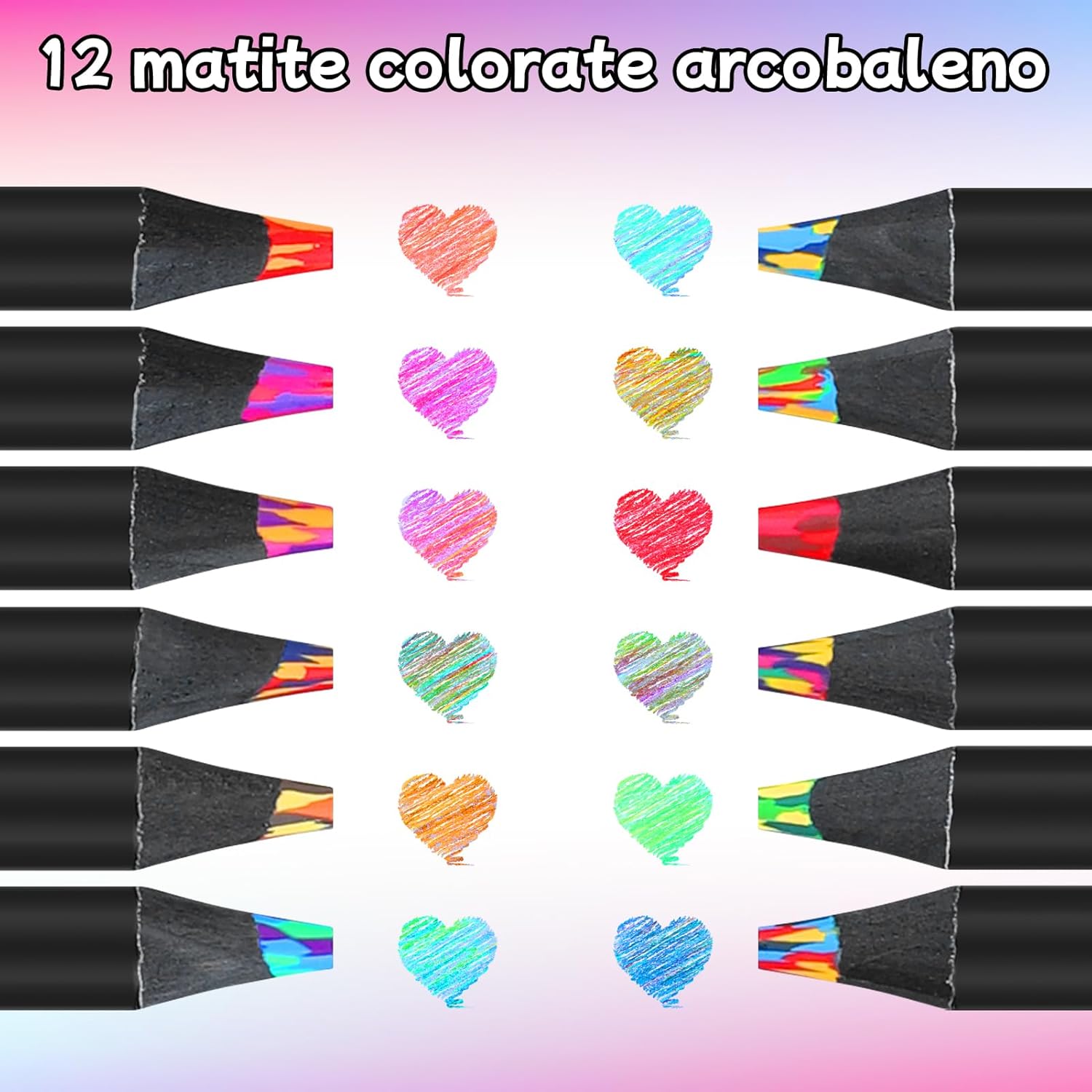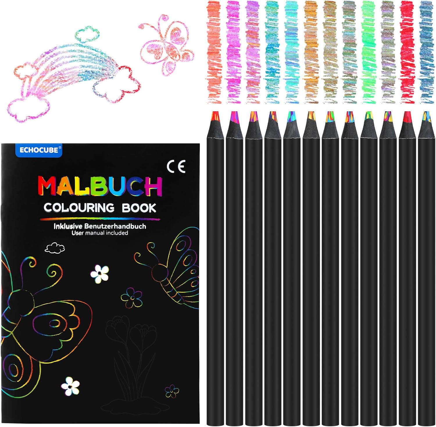 Matite colorate 7 in 1: le matite colorate ECHOCUBE uniscono sette tonalità in un unico nucleo. Basta ruotare la penna durante il disegno per ottenere sfumature delicate che faranno brillare libri da colorare, biglietti di auguri o album di ritagli con colori vivaci. Matite da disegno sicure e durevoli: il nucleo spesso 0,5 cm, in grafite di alta qualità e legno infrangibile, è infrangibile anche per mani più piccole ed entusiaste, per un divertimento duraturo. Impugnatura ergonomica e confortevole: con una superficie opaca antiscivolo che offre ai bambini una presa stabile. Il corpo della penna ha lo spessore perfetto per le mani piccole, quindi non si stancheranno anche dopo un uso prolungato. Goditi ore di disegno confortevole. Creatività in molte situazioni: sia per il fai da te a casa, per disegnare in dettaglio a lezioni di arte o come piccoli regali per i bambini in viaggio, le matite colorate ECHOCUBE per bambini stimolano l'immaginazione ovunque. Regalo ideale per ragazzi e ragazze: il set di matite arcobaleno ECHOCUBE per bambini viene fornito in una confezione riciclabile ed è pronto per sorprese. Dalle calze natalizie alle sorprese per l'inizio della scuola, puoi metterle direttamente nelle calze o nei sacchetti regalo per bambini senza imballaggi aggiuntivi.
