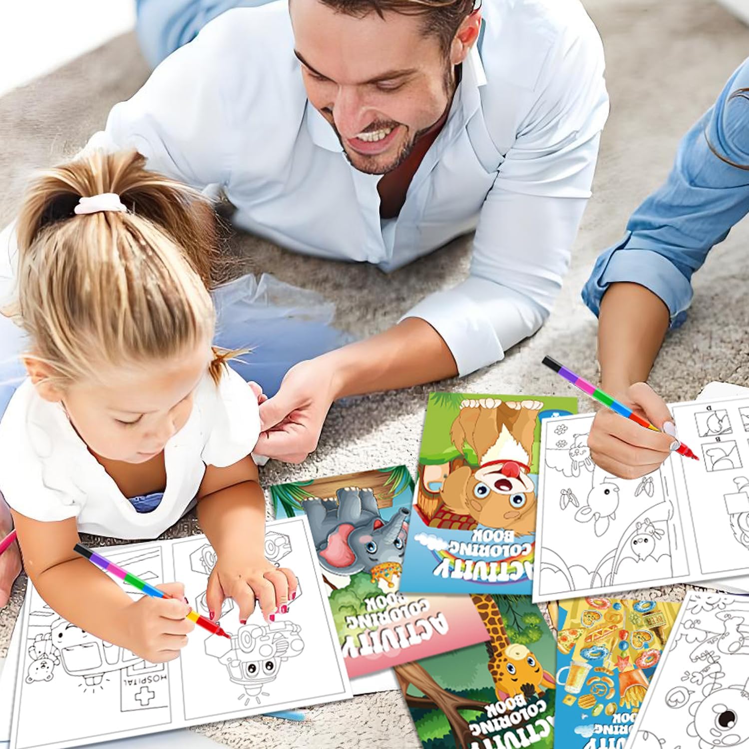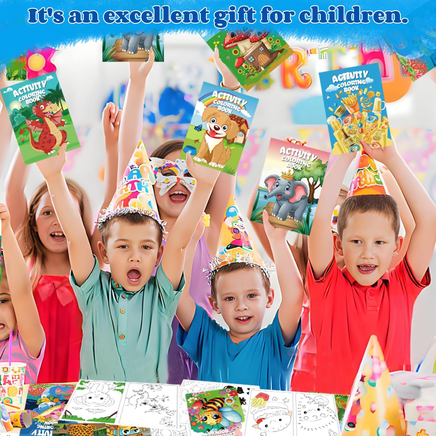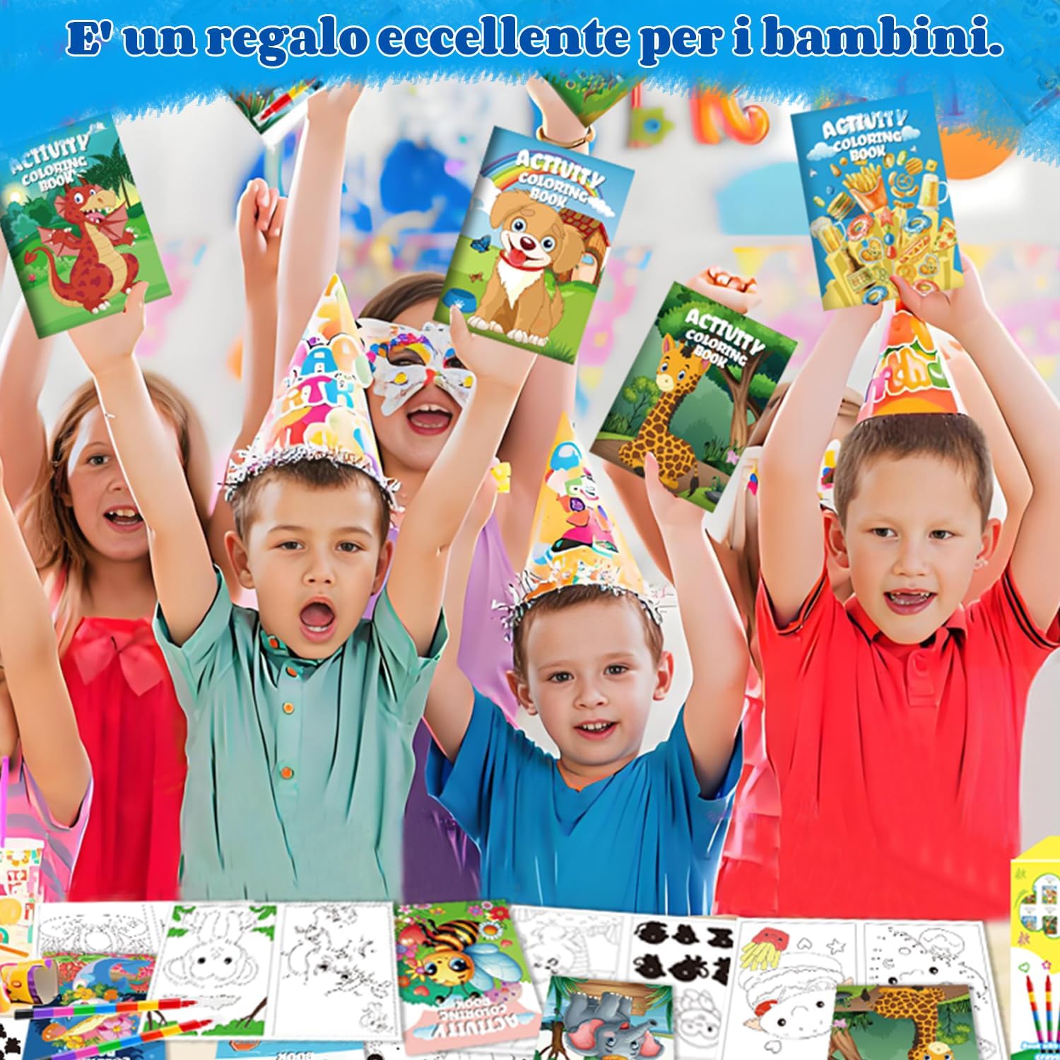 【12 Libri da Colorare Bambini e Pastelli a Cera Impilabili】 Il regalo perfetto per una festa di compleanno per bambini o un regalo d'addio all'asilo. set album da colorare per bambini contiene 12 mini libri da colorare, 12 matite colorate impilabili in 8 colori, 12 sacchetti regalo, 12 nastri dorati e 1 elegante confezione regalo – ideale come contenuto per sacchetti regalo, come premio per le classi scolastiche o come regalo per feste di compleanno, feste e ricorrenze 【Gadget Compleanno Bambini】 Questi libri di attività hanno una dimensione di 13 × 18 cm. Il set viene fornito con sacchetti regalo abbinati e nastri dorati, perfetti per intrattenere i bambini ai matrimoni, come regali di compleanno per bambini,come regalini fine festa compleanno 【Libro da Colorare per Bambini】 Il libricini da colorare bambini gadget contiene 72 giochi e 72 pagine da colorare, informativi e divertenti per bambini e bambine di 3, 4, 5, 6, 7 e 8 anni. È adatto per intrattenere i bambini durante i viaggio in auto o in aereo o al ristorante, migliorare le loro capacità di gioco, promuovere le loro abilità di disegno e la loro creatività, allenare le loro capacità di ragionamento e migliorare le loro abilità pratiche 【Regali Versatili per Ogni Occasione】Acquista senza fatica grandi quantità di regali! Ideale come regalo di fine anno scolastico, regalo di Natale, regalo di compleanno, regalo di San Valentino per bambini, regalo di Pasqua, dolcetto di Halloween, gadget festa compleanno bambini, idea regalo di nozze per bambini o regalo per le vacanze estive per studenti, regalo di addio all'asilo per bambini 【Divertenti e Convenienti】Questi libri da colorare per bambini con motivi di dinosauri, animali, animali domestici, frutta e automobili offrono un intrattenimento economico ma creativo. Questo pacchetto conveniente garantisce ore di tranquilla occupazione per i bambini a casa o a scuola ed è un must