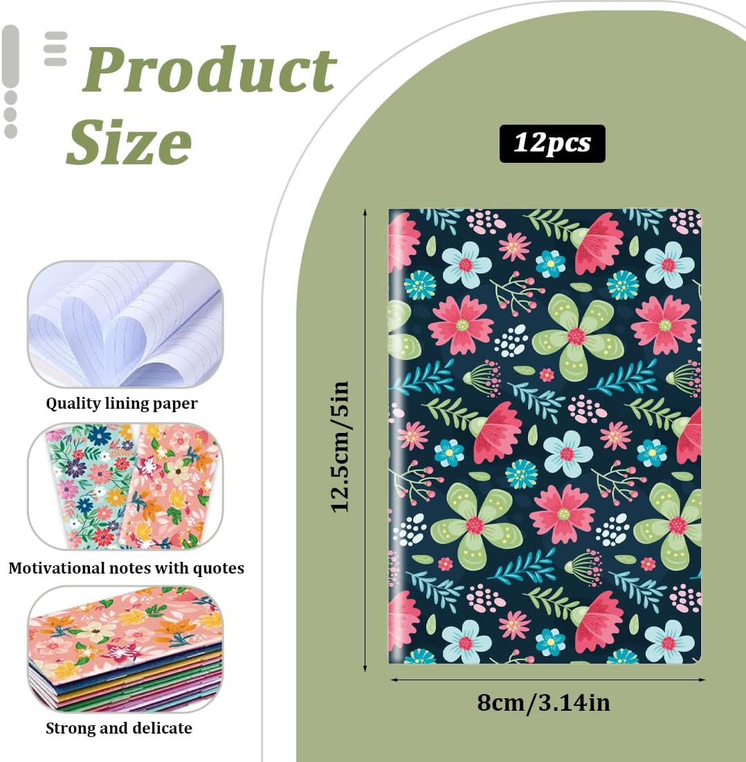 Contenuto: 12 mini block notes con copertina morbida, disponibili in 12 stili diversi. Materiale premium: questi quaderni tascabili sono realizzati con carta durevole e di alta qualità, resistente agli strappi. Hanno 64 pagine (32 fogli) e sono facili da scrivere. Durano a lungo. Dimensioni: circa 12,5 x 8 cm per taccuino. Pratico: i mini quaderni sono pratici e possono essere utilizzati per riempire i sacchetti delle sorprese dei bambini e annotare i loro ricordi, scrivere e dipingere. Piccoli regali di compleanno sono facili da portare ovunque. Regalo perfetto: questi quaderni tascabili possono essere dei bei regali per bambini, studenti, sono molto utili per lavorare e studiare, sono utili per far scrivere ai bambini, il che può sviluppare una buona abitudine di scrittura tra gli studenti. Regali stimolanti: questi mini diari possono essere regali delicati per un bambino, uno studente, un collega e sono adatti a casa, in ufficio o a scuola.