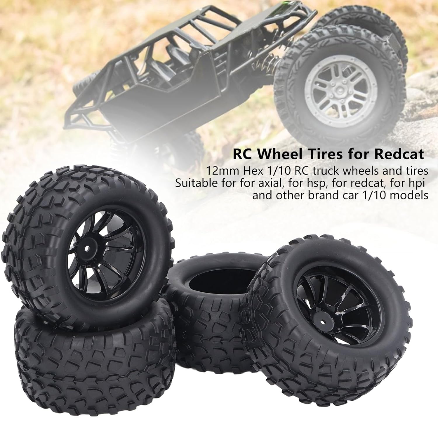 [Altamente compatibile] applicabile per una vasta gamma di modelli di camion RC 1/10, tra cui Assiale, e HPI. [Grip migliorato] I pneumatici in gomma presentano una trama irregolare per migliorare le prestazioni della presa e della movimentazione. [Esperienza di guida stabile] garantisce un'eccellente presa e stabilità, offrendo un'esperienza di guida flessibile su vari terreni. [Costruzione durevole] forte ammortizzazione e elevata abrasione per la guida su strade ruvide in ambienti difficili. [Installazione facile] include 4 pneumatici e dadi per una facile sostituzione di pneumatici per auto RC vecchi o danneggiati.