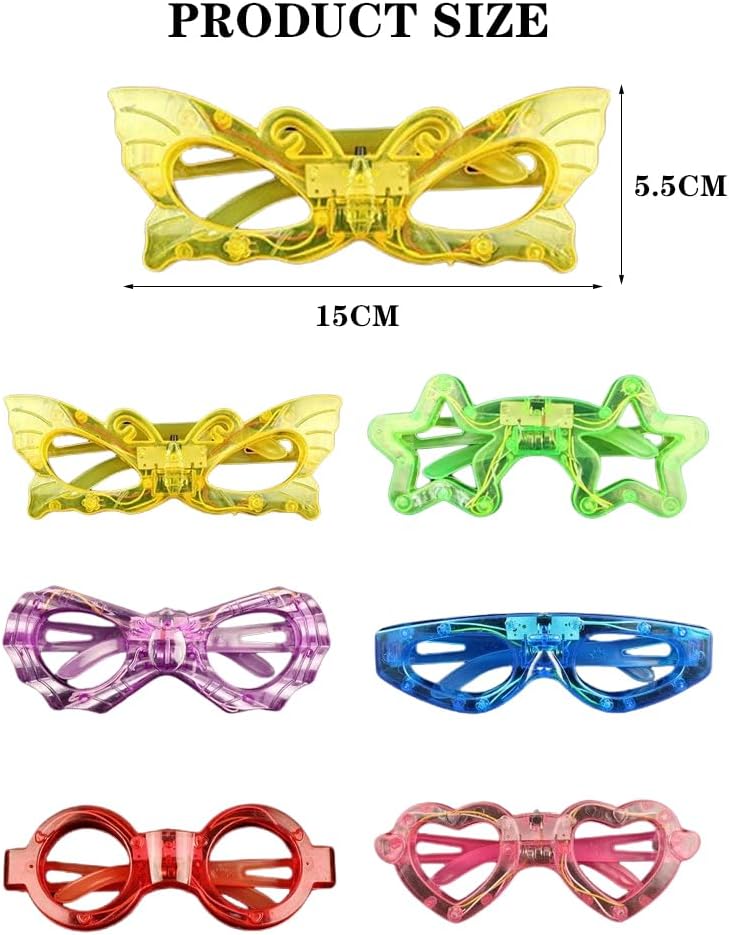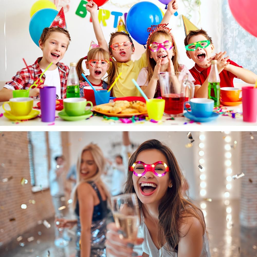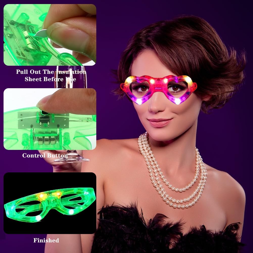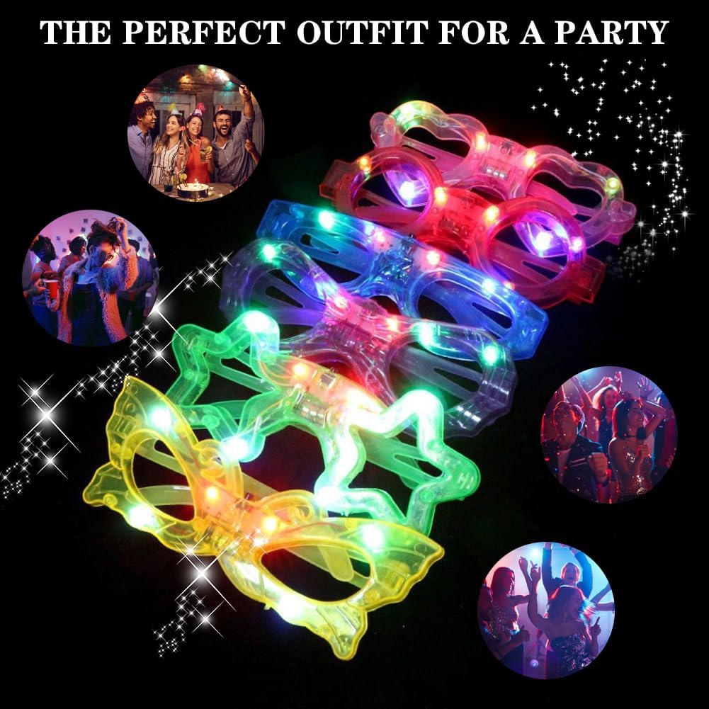 12 occhiali LED per feste, al neon, per feste, occhiali luminosi, rave shutter shades, occhiali festival, accessori per feste per bambini, gadget per feste di compleanno, Halloween, carnevale