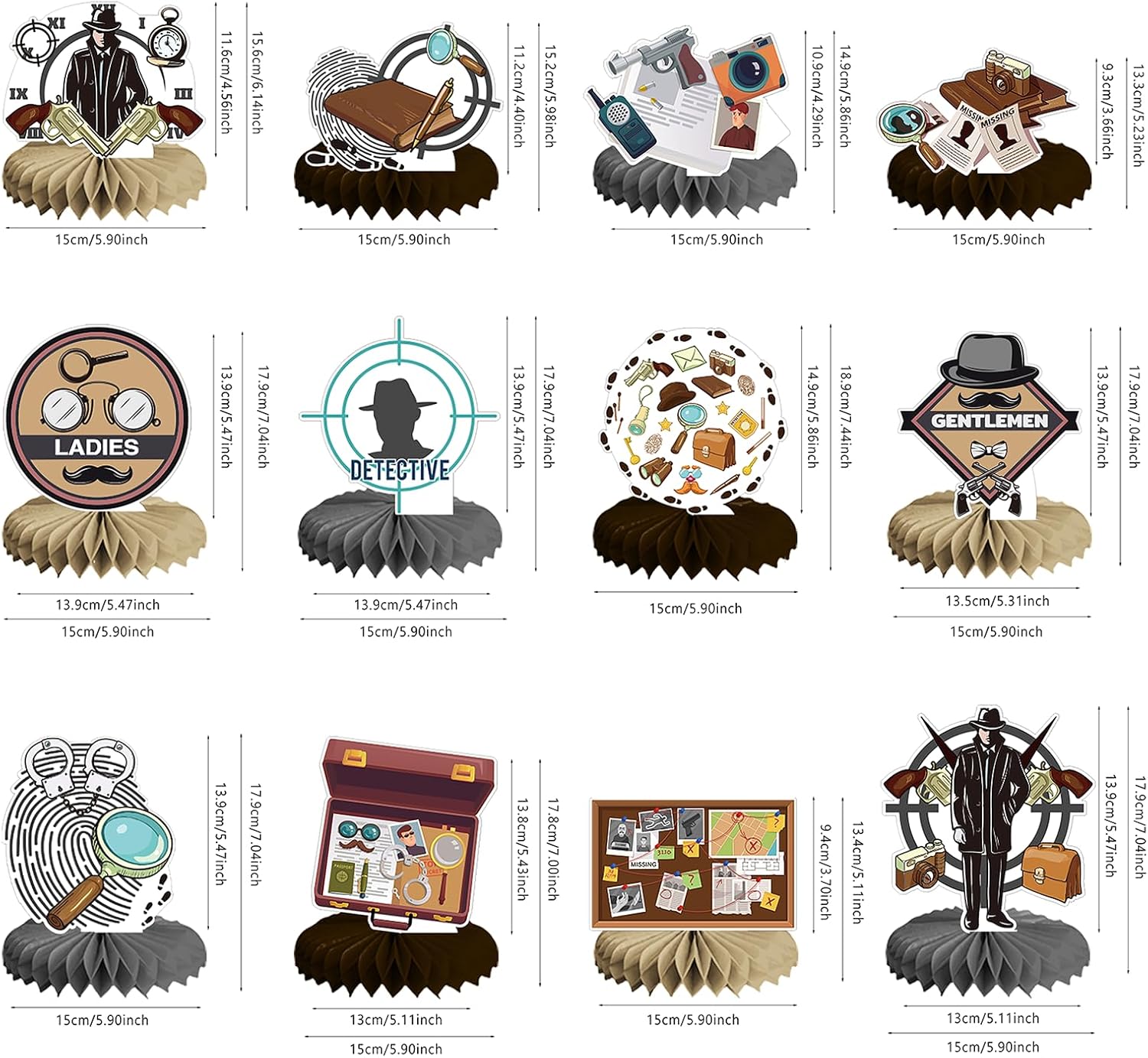Decorazioni Detective Party: Riceverai 12 pezzi di centrotavola detective a nido d'ape, contiene 12 cartoni modellati e 12 favi di carta. Decorazione ideale per feste a tema detective e feste a tema mistero. Alta qualità: I centrotavola del nido d'ape detective sono fatti di cartone robusto e durevole e di carta sottile di alta qualità, non facile da piegare e strappare, stampa chiara, peso leggero, facile da memorizzare e trasportare. Disegni tematici Mystery Spy: Il nostro party a tema detective è meticolosamente progettato dal designer, utilizzando modelli top secret detective segreti, tra cui lenti di ingrandimento, foto, impronte, fotocamere, occhiali e modelli di barba falsa, penne, taccuini, valigetta, walkie-talkie, torce, cappelli detective e altri modelli di oggetti detective correlati. È misterioso e interessante, e attirerà rapidamente l'attenzione, Immergere tutti in un incredibile mondo investigativo. Facile da montare: Step1, staccare l'adesivo dal nido del detective. Passo 2, incolla la scheda a tema detective in un'area fissa. Passo 3, eseguire la stessa operazione dall'altro lato. Quindi posizionare la cella detective installata sul tavolo per decorare la vostra festa a tema detective. Occasioni: Le nostre forniture del partito detective sono adatte a varie occasioni, come la festa a tema detective, la festa di compleanno detective, la festa a tema spia, la festa top secret, la festa del mistero, la festa a tema detective 1920, la festa a tema retrò, la festa di performance scenica, le decorazioni domestiche, l'evento di gioco di ruolo e altri eventi interni o esterni.
