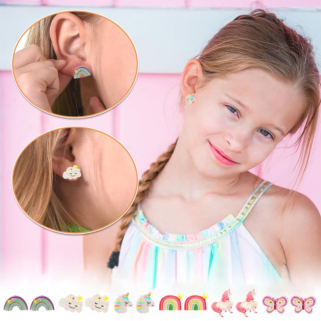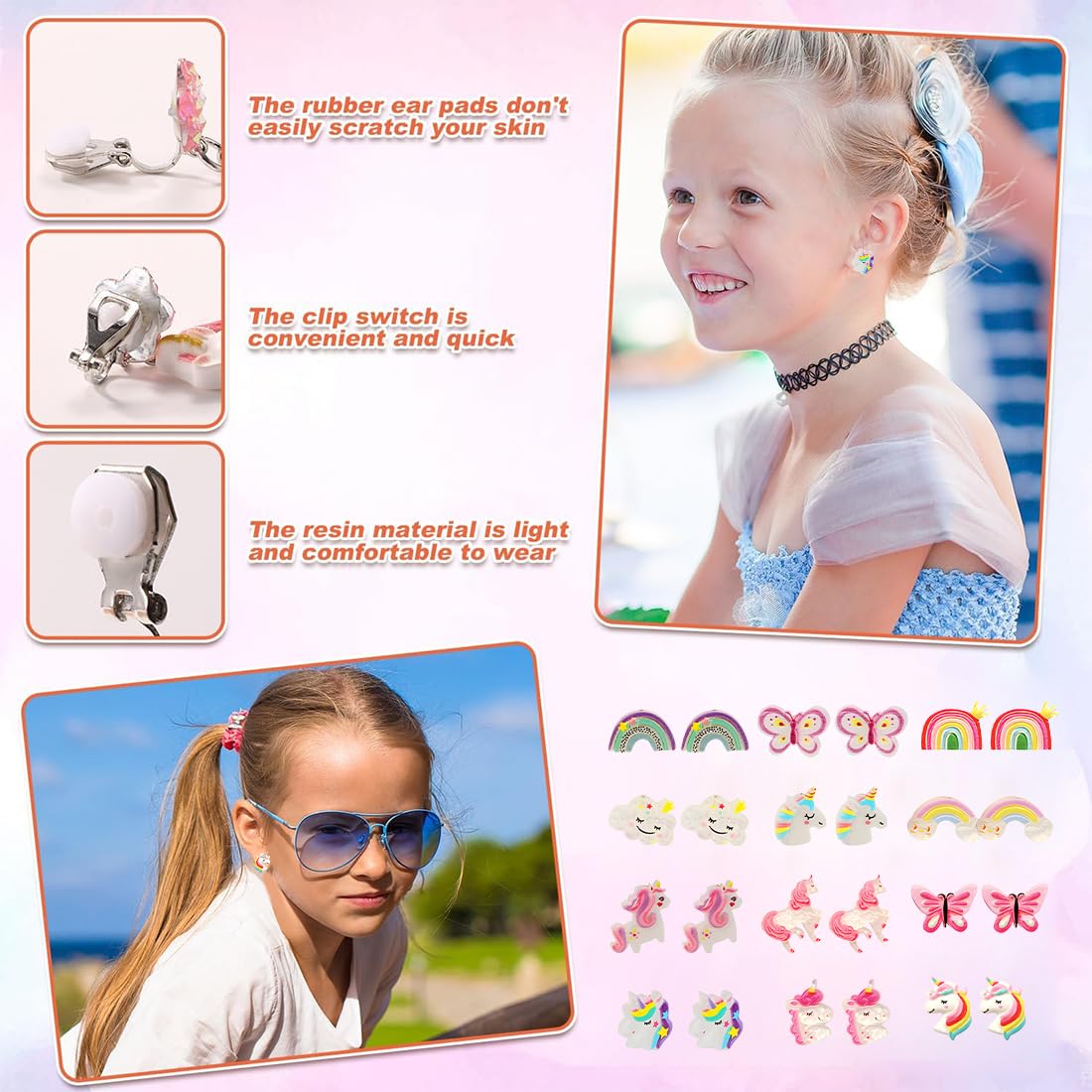 Forma di fiaba fantasy: una miscela di arcobaleni, farfalle, unicorni, nuvole e altri elementi di fiaba, forma colorata e bella, vivida e bella per soddisfare il desiderio del bambino per il mondo delle fiabe, vestirsi per aggiungere divertimento infantile. Design amichevole senza fori: forma a clip per l'orecchio, con cuscinetti in gomma, nessuna necessità di forare l'orecchio, nessun graffio sulla pelle quando si indossa, facile da togliere, adatto a tutti i bambini, facile da aprire la simpatica esperienza in costume. Materiale leggero e confortevole: materiale a base di resina, leggero, nessun peso per un uso prolungato; I cuscinetti auricolari in gomma sono morbidi e delicati sulla pelle, riducono la pressione sull'orecchio, comodi e sicuri, più comodi da indossare per i bambini. Ricche possibilità di combinazione: una varietà di clip per orecchie, che coprono una varietà di temi di fiabe, possono essere adattati in modo flessibile a diversi stili di indossamento (carino, casual, stile di personalità) e scene (vita quotidiana, festa, spettacolo), in modo che i bambini possano facilmente passare da un aspetto carino all'altro e mostrare una varietà di ciondoli. Garanzia di artigianato di alta qualità: pregevole fattura, modello chiaro, parti metalliche della clip per l'orecchio sono solide, non facili da danneggiare, cadere, qualità affidabile, è un regalo di moda divertente per i bambini, può essere utilizzato anche per riporre e giocare gli accessori dei bambini, accompagnato dai bambini che si travestono felicemente!