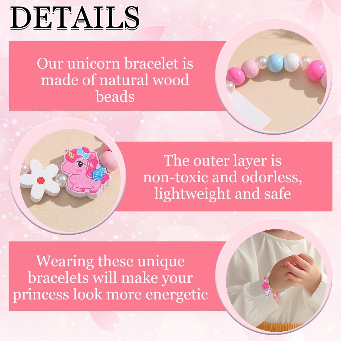 【Set di braccialetti per ragazze】I nostri braccialetti unicorno per ragazze includono 12 pezzi di braccialetti dai colori vivaci e graziosi ciondoli con motivo unicorno, offrendoti una varietà di stili perfetti per i compleanni o come accessorio quotidiano. 【FACILI DA ABBINARE】Questi braccialetti in legno a forma di unicorno sono disponibili in colori vivaci e stili diversi, i braccialetti luminosi per ragazze attirano l'attenzione e si abbinano a qualsiasi abbigliamento. Ideali per valorizzare ogni outfit e far brillare le bambine alle feste o nella vita di tutti i giorni. 【REGALO IDEALE PER LE BAMBINE】Questi braccialetti per bambini sono molto popolari tra le bambine, ideali per compleanni o occasioni speciali. Distinguiti dalla massa e rendili alla moda e carini. Possono anche condividere questi braccialetti con le amiche, rafforzando le loro amicizie e creando ricordi duraturi. 【MATERIALE E DIMENSIONI】I nostri braccialetti unicorno sono realizzati con perline di legno naturale con un rivestimento esterno atossico e inodore. Ecologico, leggero e sicuro da indossare, il braccialetto per bambini misura 5,2 cm di diametro interno ed è disponibile in colori vivaci e graziosi motivi per piccole principesse. 【AMPIA APPLICAZIONE】Questi braccialetti unicorno per bambini sono perfetti per tutti i tipi di feste, premi in classe, premi di giochi, collezioni, servizi fotografici, feste di compleanno, feste di unicorno, matrimoni, Natale, Halloween, San Valentino, feste in maschera, ecc., che attirano facilmente l'attenzione delle ragazze e soddisfano le loro esigenze quotidiane, ideali per migliorare qualsiasi outfit e far brillare le bambine alle feste o nella vita quotidiana.