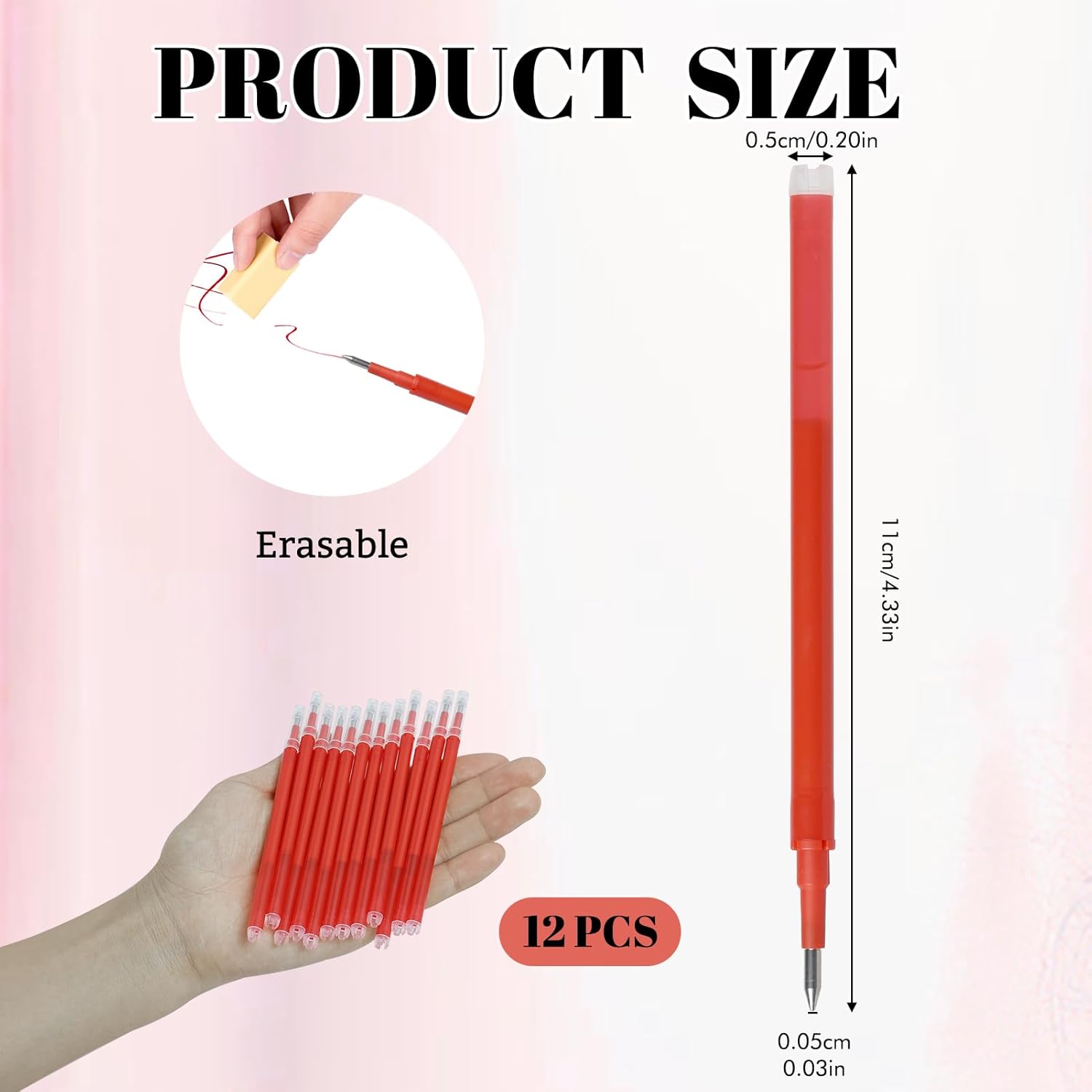 Queste ricariche sono compatibili con una vasta gamma di penne FriXion, garantendo la continuità nell'uso delle vostre penne preferite. Grazie alla loro cancellabilità, potete correggere facilmente gli errori di scrittura senza lasciare tracce, per una presentazione impeccabile. L'inchiostro fluido di queste ricariche offre un'esperienza di scrittura eccezionale, scorrevole e precisa su qualsiasi tipo di carta. La rapida asciugatura dell'inchiostro a base di gel evita sbavature e garantisce una scrittura pulita e senza inconvenienti. Confezionate in un set da 12 pezzi, queste ricariche rosso sono durevoli e affidabili, offrendo una lunga durata di inchiostro di alta qualità.