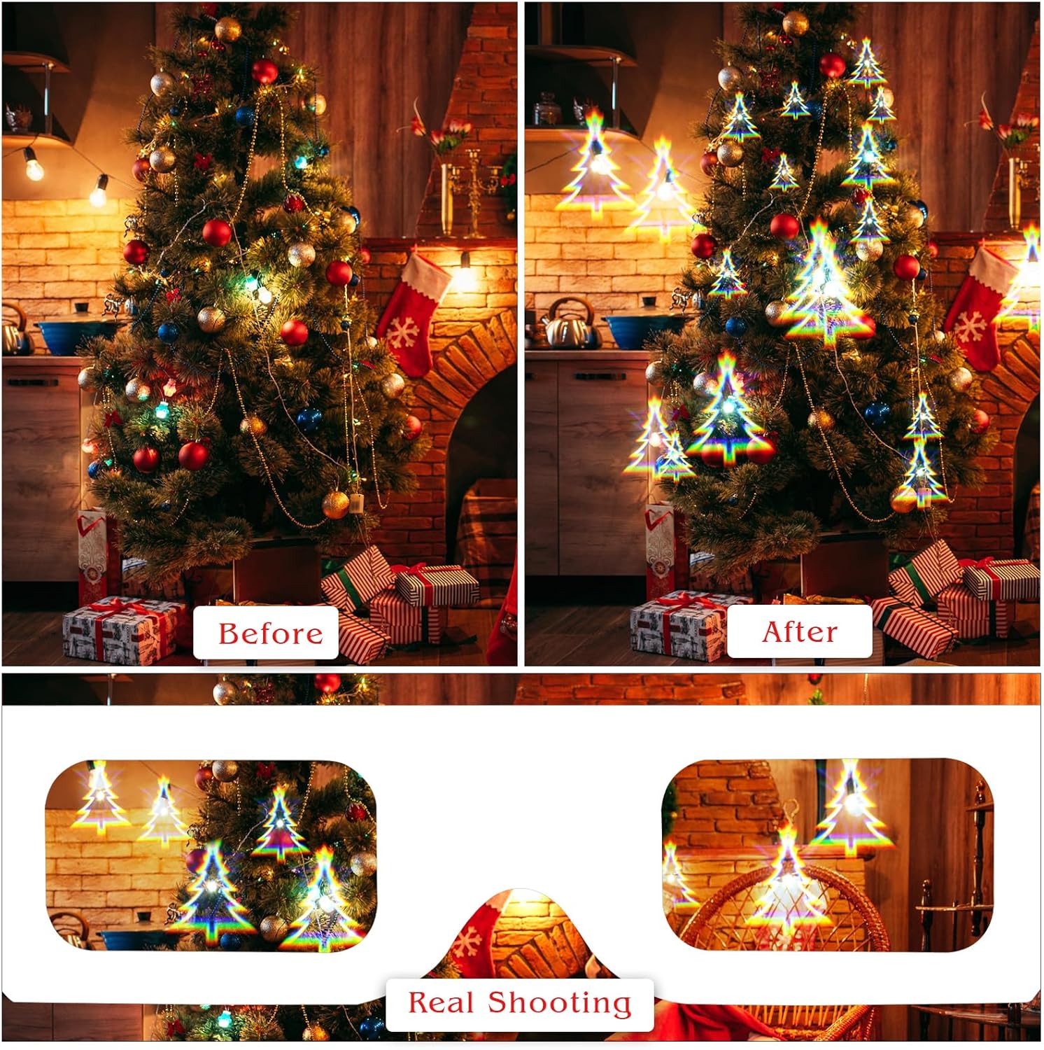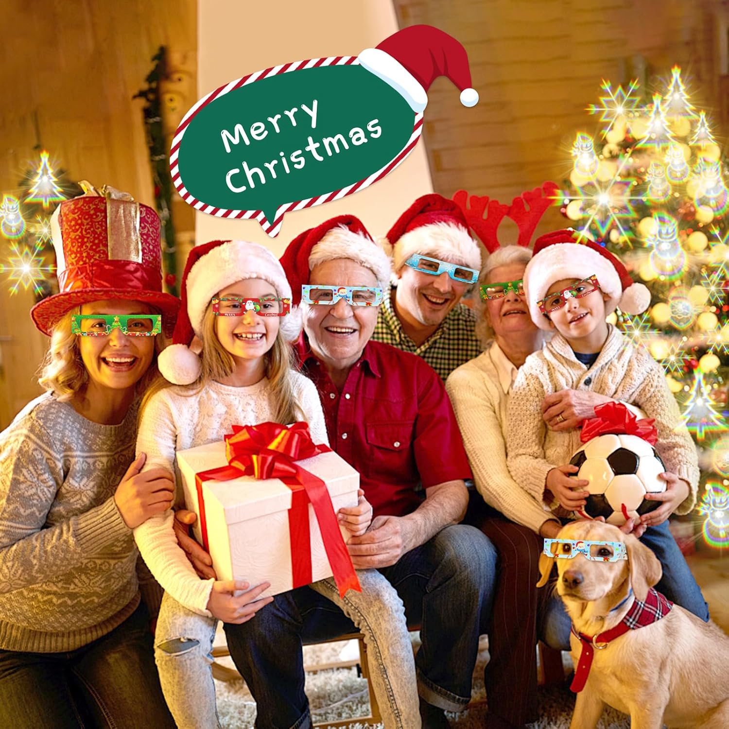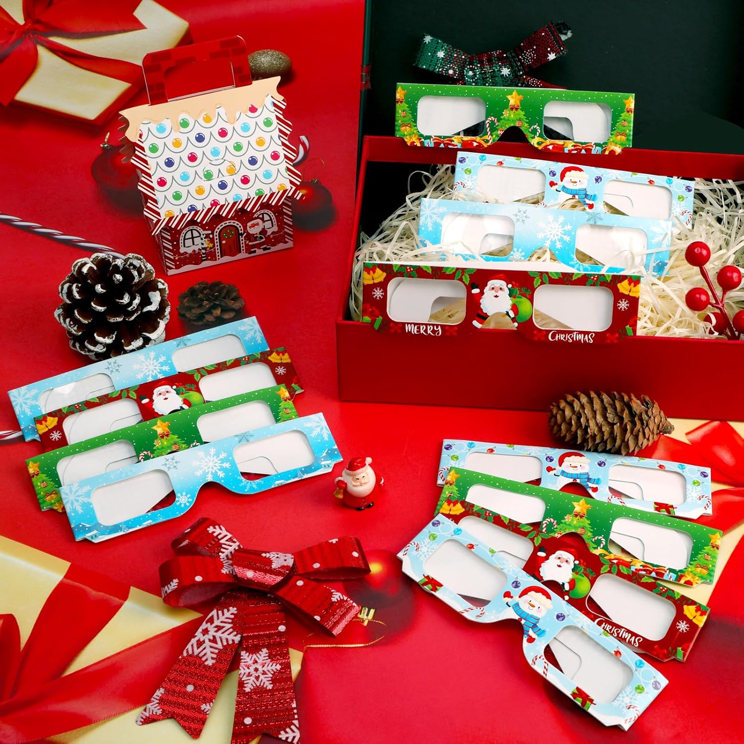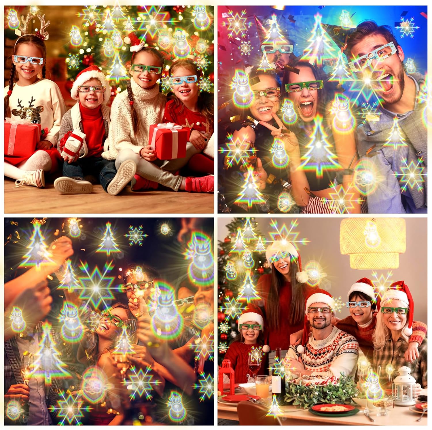 Cerchi un accessorio speciale per la tua festa di Natale/Capodanno? I nostri bicchieri natalizi con decorazioni natalizie soddisfano perfettamente le tue esigenze. La confezione include: ❄️3 bicchieri con motivo a fiocco di neve - Effetto fiocco di neve ☃️3 bicchieri con motivo a pupazzo di neve - Effetto pupazzo di neve 🎅3 bicchieri con motivo a Babbo Natale - Effetto Babbo Natale 🎄3 bicchieri con motivo a albero di Natale - Effetto albero di Natale ➤ Leggeri e pieghevoli, di alta qualità e resistenti, perfetti da portare in giro. ➤ Consigliamo un uso frequente e l'osservazione di diverse fonti di luce. Gli effetti possono variare di volta in volta e rimarrai sorpreso ogni volta. ➤ Questo set di 12 paia di occhiali natalizi è adatto a uomini, donne, giovani e anziani, ed è perfetto per riunioni di lavoro, feste di famiglia, feste in ufficio, ecc., aggiungendo un'atmosfera festosa, divertimento e relax. ➤ Trasforma facilmente qualsiasi spazio in un paese delle meraviglie natalizio! ➤ Dove posso usare gli occhiali natalizi a diffrazione? Natale, feste di Capodanno, spettacoli pirotecnici, spettacoli di luci, luci della città, brevi viaggi, luci dell'albero di Natale, oggetti di scena per feste natalizie, feste in ufficio, EDM, rave party, feste aziendali, riunioni di famiglia, riunioni di amici, ecc., E questi occhiali da festa sono anche un'ottima idea regalo.