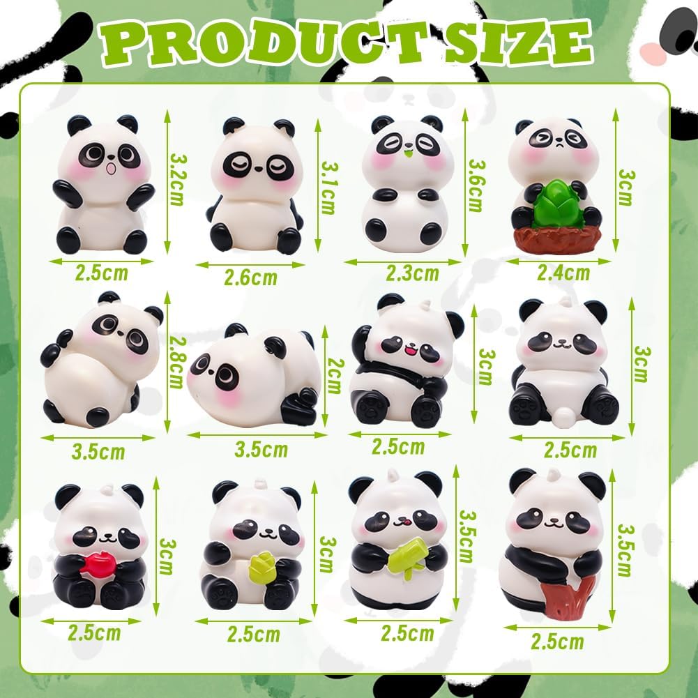【Carino panda】12 bambù unico stelo / bambù foglia mini panda, ideale per gli amanti del panda, decorazione della torta o decorazione della casa. Ogni panda ha un viso e una mano sofisticati che catturano la natura "carina" del panda. Ideale per aggiungere una sensazione giocosa a un tavolo, giardino o scaffale. 【Mini misura multifunzione】piccole dimensioni di 2,8 x 3 cm per piccoli giardini, banchi o scrivanie. Il peso è leggero, ciascuno pesa 10 grammi, quindi non danneggia le piante nel contenitore di mangimi. Usato come ingrediente per torte, regalo per feste o premio in classe - per feste per bambini e istituzioni educative. 【Materiale di qualità】la statua di panda è realizzata in PVC, non è facile da spezzare o sbiadire e può essere riutilizzata. Forma realistica, diversi stili. Superficie liscia e adatta per l'arredamento domestico. 【Facile da usare】non è necessario montare - può essere installato direttamente in giardino, su scaffali o in vaso. Il fondo piatto garantisce stabilità e non si ribalta facilmente. Ideale per gli acquirenti che vogliono una ristrutturazione rapida 【Ideale per le occasioni】Ideale per feste a tema panda europeo, decorazioni domestiche (camera da letto, soggiorno) o come regalo. La diversità di questa collezione ha attirato giochi a tema di panda per bambini e collezioni di ornamenti per adulti. Le opzioni multifunzionali aggiungono fascino a qualsiasi spazio.