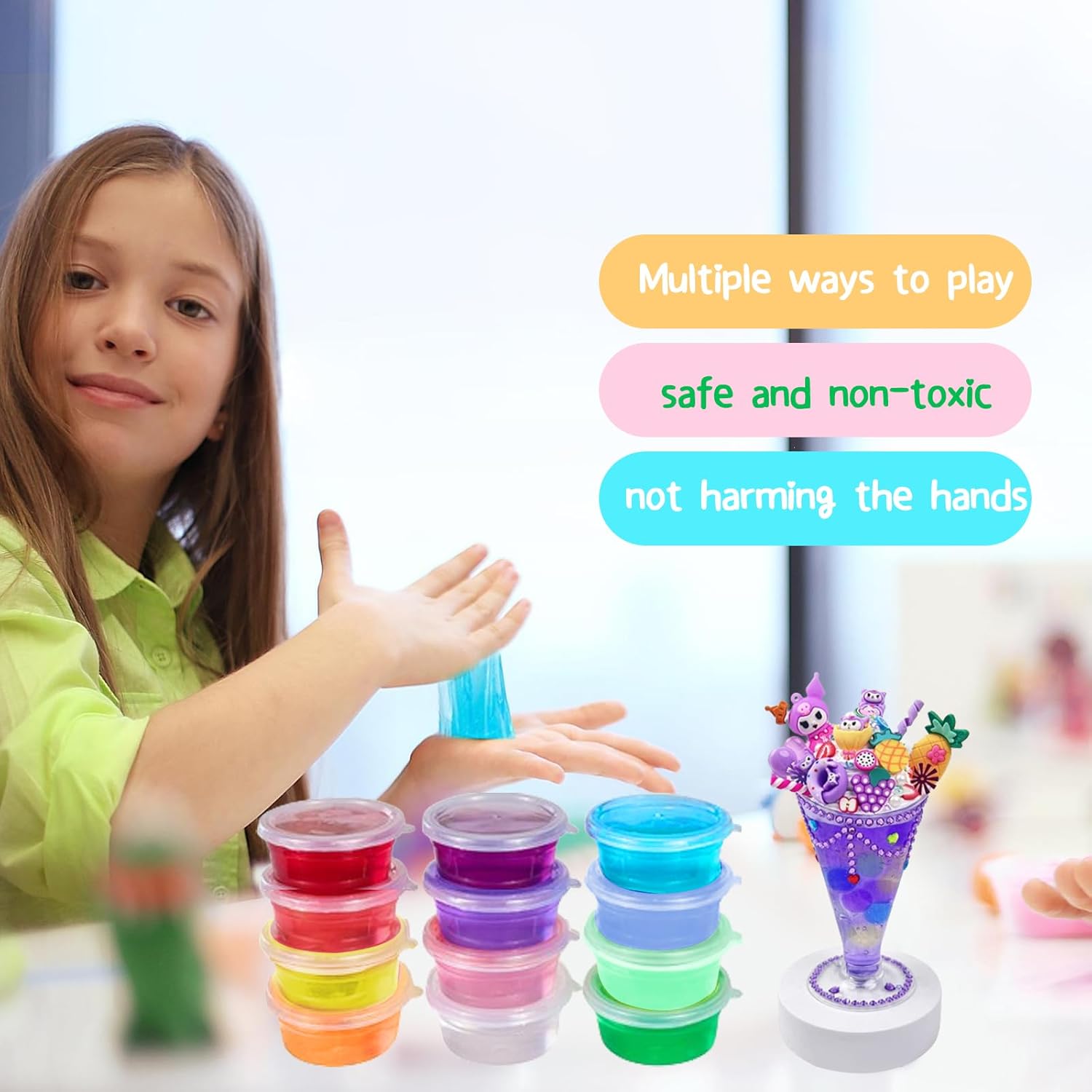 Set di slime fai-da-te: il nostro prodotto contiene dodici colori di slime, ogni colore di slime è confezionato separatamente, il che offre più scelte ai bambini piccoli che amano i diversi colori, e favorisce il gioco con i loro colori preferiti di slime. Divertimento da set di slime: i nostri prodotti hanno una buona duttilità, si allungano facilmente e non si rompono, sono trasparenti e lucidi, freschi al tatto, possono essere impastati in una varietà di forme diverse, estremamente interessanti. GIOCARE E IMPARARE: il set di melma fai da te è adatto ai bambini di età superiore ai 5 anni, può sviluppare la loro immaginazione, l'abilità manuale, le abilità motorie fin dall'infanzia, e anche godere del divertimento del gioco, che è molto popolare tra i bambini. FACILE DA PULIRE: ogni colore di melma è confezionato singolarmente, facile da estrarre quando si gioca, quando non si gioca si può rimettere nella scatola, stringendo il coperchio per evitare che la melma si secchi per il gioco successivo. REGALO PERFETTO PER I BAMBINI: Il nostro set di melma è adatto come giocattolo interattivo genitore-figlio per approfondire il legame emotivo tra le famiglie, ma anche per sviluppare le abilità manuali e l'immaginazione dei bambini. Regalo perfetto per compleanni, eventi scolastici, Halloween, Natale, Capodanno, feste e altro ancora.