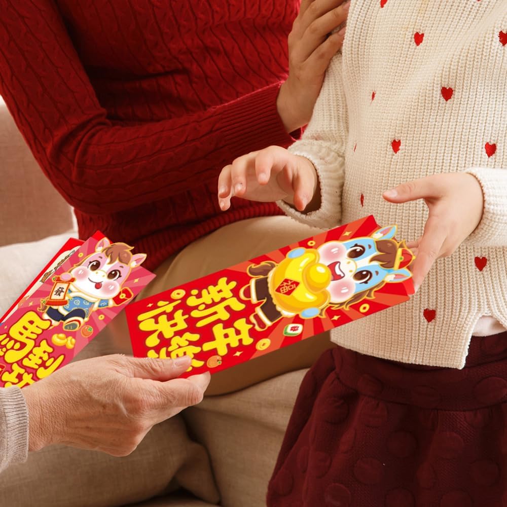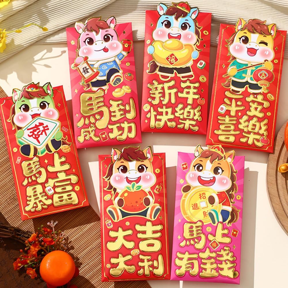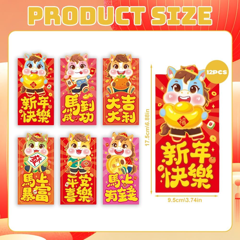 【Wishes sinceri】: Le buste rosse cinesi sono stampate con molte diverse benedizioni tradizionali cinesi, tra cui "Felice anno nuovo", "Buona fortuna", "Avere i soldi subito", "Pace e gioia", "Diventa ricco immediatamente", ecc. ., per mettere in contanti, monete o altri piccoli regali, auguro a tutti un felice anno nuovo, prosperità e tutto il meglio. 【Anno del Cavallo】: 2026 è l'anno del Cavallo nel calendario lunare cinese, quindi la nostra busta cinese viene fornita con molti simpatici e interessanti motivi di Cavallo di cartoni animati, aggiungendo disegni di fogli rossi e dorati per adattarsi meglio all'atmosfera di nuovo anno. 【Set di buste rosse preziose】: riceverai 12 pezzi pacchetti rossi cinesi di Capodanno, il set di busta rossa di Snake Lunar Capodanno contiene 6 pezzi pacchetti di denaro fortunato a motivi diversi, ognuno con Cavallo di cartoni animati e benedizioni tradizionali cinesi, carine e significativa. 【Busta rossa di Capodanno lunare】: le buste rosse sono realizzate in cartone spesso, non è facile da rompere, forte e resistente, denso e non facile da rompere, ben fatto, superficie liscia e buon aspetto. 【Ampiamente utilizzato】: La tasca rossa di Capodanno lunare è stampata con motivi carini e molte benedizioni diverse, che possono essere usate non solo nel nuovo anno, ma anche per compleanni, matrimoni, docce per bambini, parenti in visita, cerimonie di laurea, da festa del papà , Festa della mamma, ecc. Per inviare i migliori auguri.