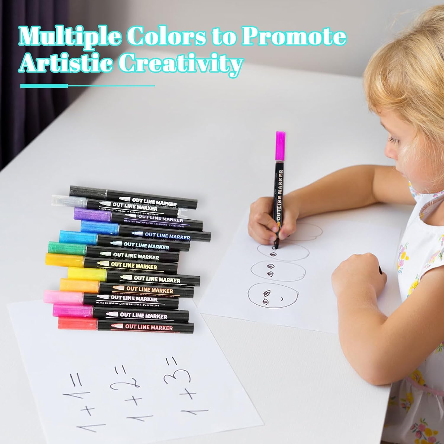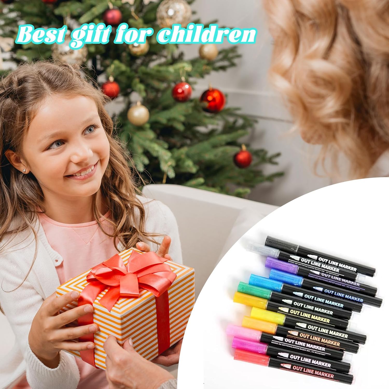 Magia glitterata: con le nostre 12 matite per contorni in diversi colori, i piccoli artisti possono dare vita alle loro opere d'arte. Con una lunghezza di 13,5 cm e un tappo di 2,5 cm, queste penne sono ideali per le piccole mani degli artisti. Le penne sono ideali per le mani dei bambini e sono perfette come piccola sorpresa per il calendario dell'Avvento. Sicuro e non tossico: una scelta sicura per i vostri bambini. Le nostre matite per contorno sono realizzate con una punta in nylon ultra fine particolarmente resistente e resistente alla pressione, che consente una scrittura fluida. Adulti e bambini possono utilizzare il set in sicurezza. Godetevi ore creative senza preoccupazioni! Imparare giocosamente: le nostre matite promuovono la creatività e le abilità motorie. Con i magici effetti cromatici, l'apprendimento attraverso la visualizzazione è doppiamente divertente e i colori vivaci fanno sì che i bambini liberino la loro immaginazione. Ideale per la scuola e la casa. Per principesse e artisti: ogni ragazza amerà le nostre matite glitterate. Che si tratti di colorare principesse o progetti artistici fai da te, queste penne sono un sogno per ogni ragazza che ama esprimere la propria creatività con un tocco di glitter. Versatile: le nostre matite glitterate svolgono il loro effetto non solo sulla carta, ma anche su superfici lisce. L'inchiostro garantisce opere d'arte di lunga durata su diversi materiali. Ideale per scrapbooking, biglietti di auguri o per decorare regali.