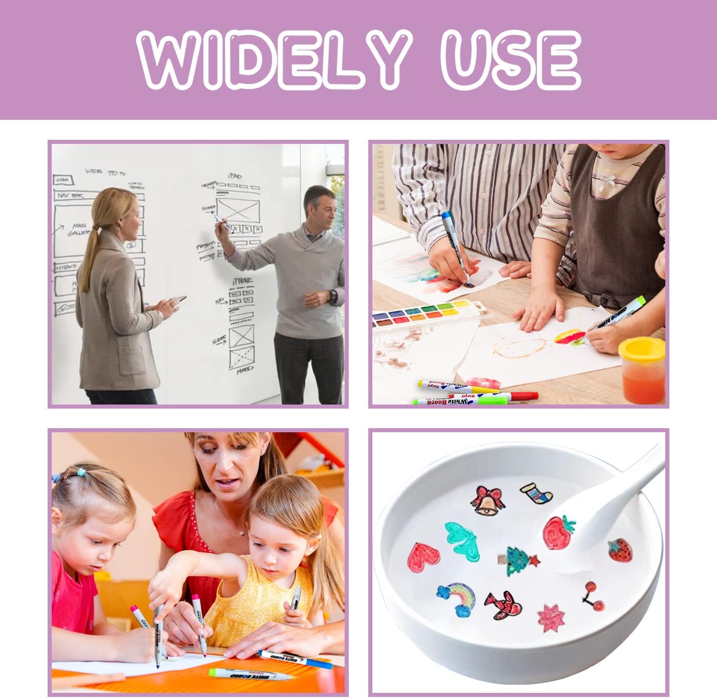 Penna magica ad acqua: il materiale unico lo rende insolubile in acqua, e il motivo disegnato galleggia liberamente nell'acqua e lo dà vita, il che è molto interessante! Sicuro da usare: inchiostro atossico certificato e speciale formula inodore, innocuo per il corpo umano. Set di 12 pennarelli colorati per lavagna bianca, ad asciugatura rapida, scrittura liscia, nessuna perdita di inchiostro. L'inchiostro a base d'acqua può essere facilmente cancellato dalla lavagna con un panno senza lasciare tracce. 【Istruzioni】 Si consiglia di dipingere su cucchiai di ceramica o metallo. A causa delle diverse caratteristiche del materiale, l'uso di cucchiai di plastica o di altri materiali potrebbe non essere efficace. 【Più divertimento nel fai da te】: i bambini possono partecipare alla pittura fai da te con amici o genitori, arricchire il loro tempo libero, migliorare l'interazione tra genitori e bambini e l'amicizia, la capacità di comunicazione, adulti e bambini sono adatti. Kit per pittura ad acqua galleggiante: viene fornito con 1 cucchiaio in ceramica. Per garantire che il dipinto possa nuotare con successo, il cucchiaio deve essere asciutto. Il dipinto deve attendere 3-5 secondi per asciugarlo prima di metterlo in acqua. Il cucchiaio deve essere immerso lentamente in acqua per far galleggiare la superficie dell'acqua.