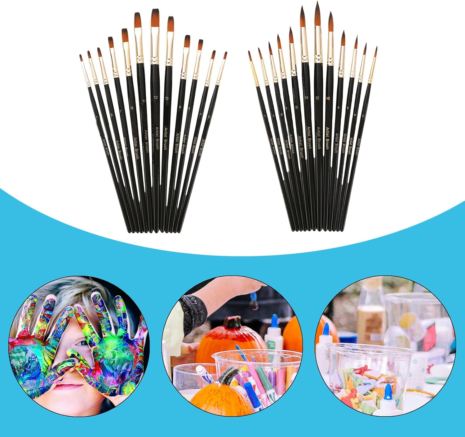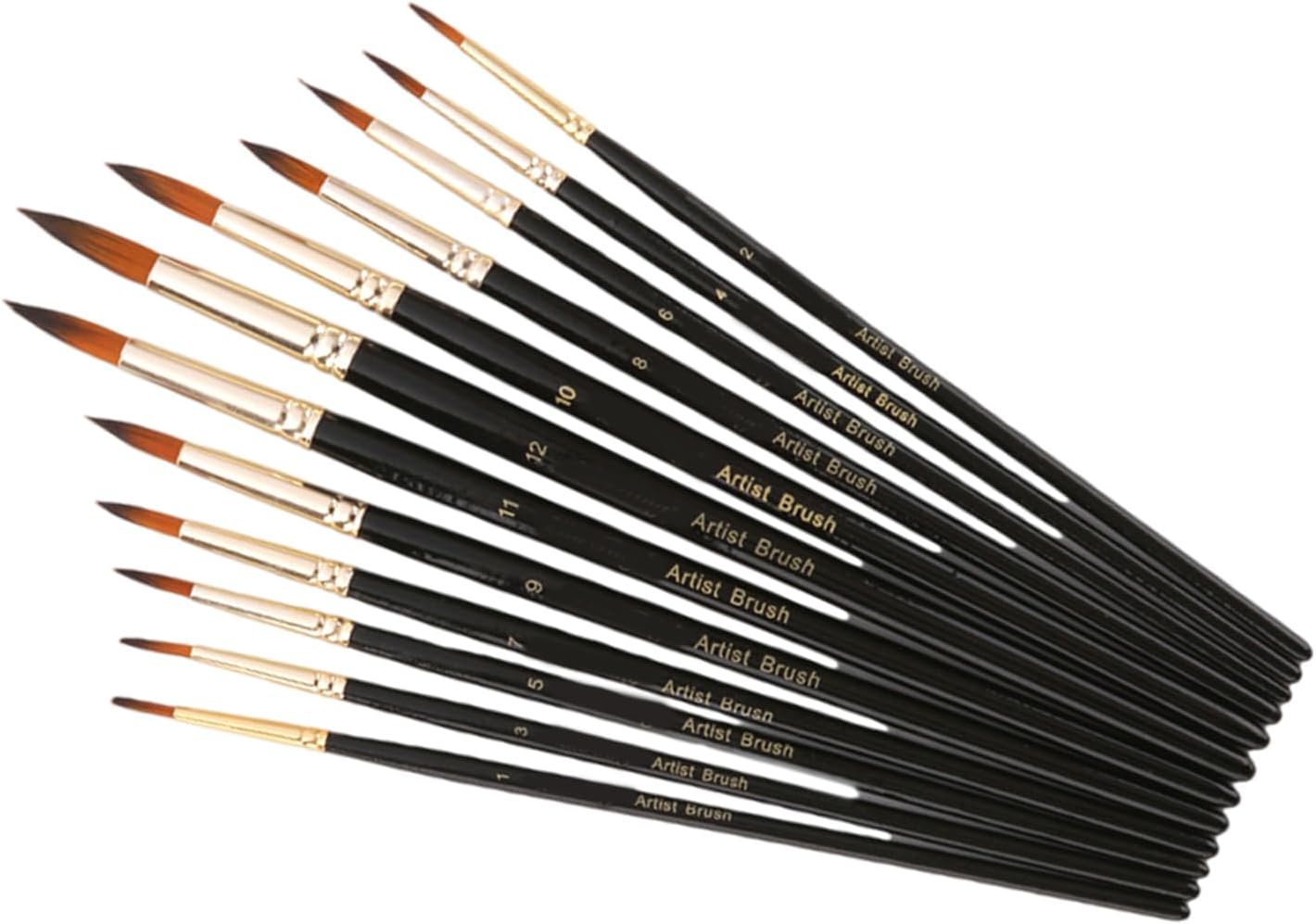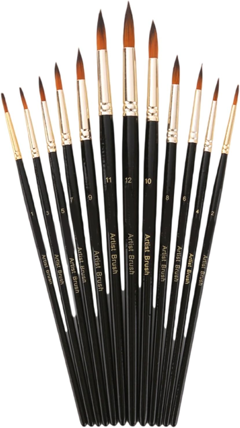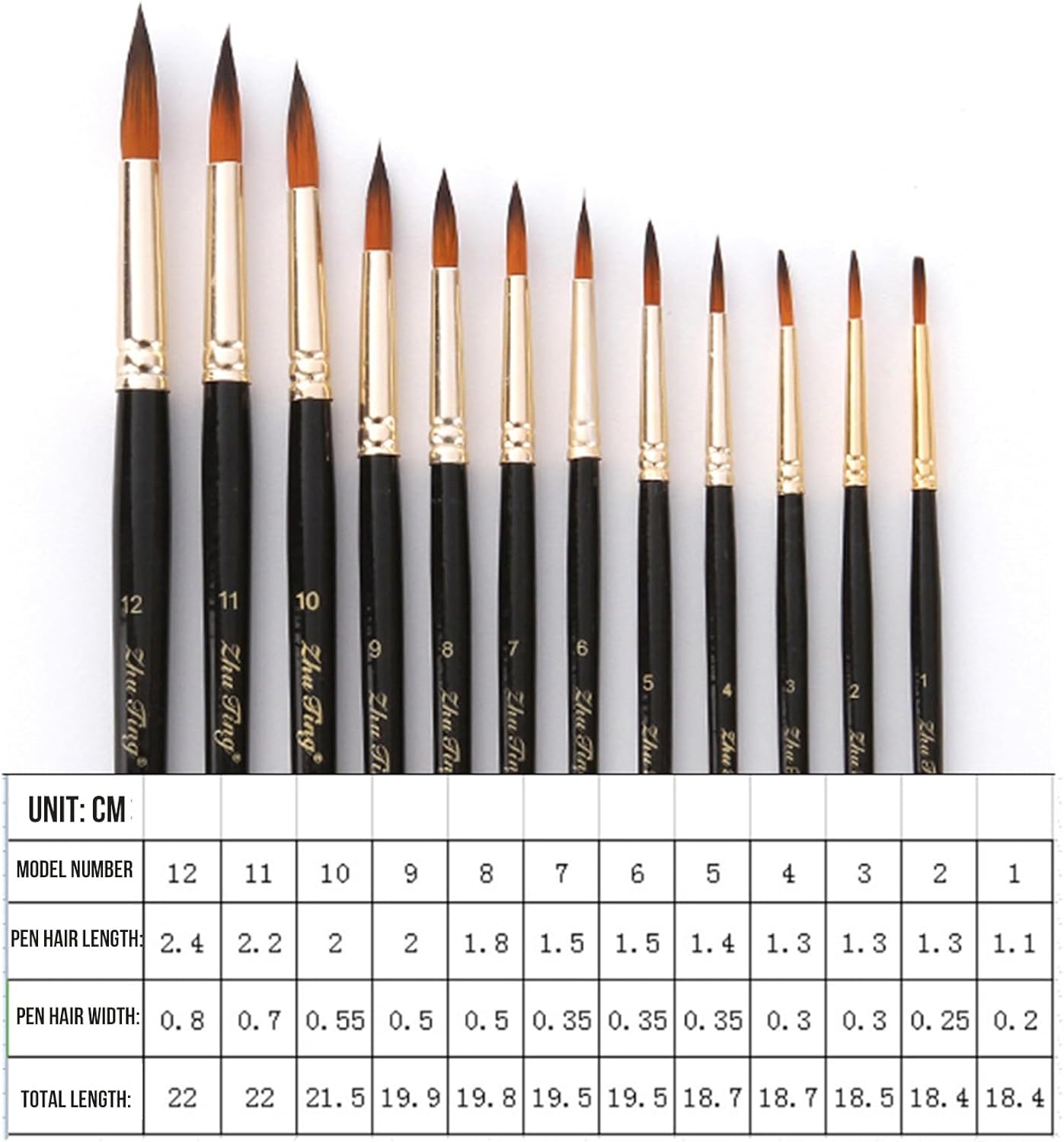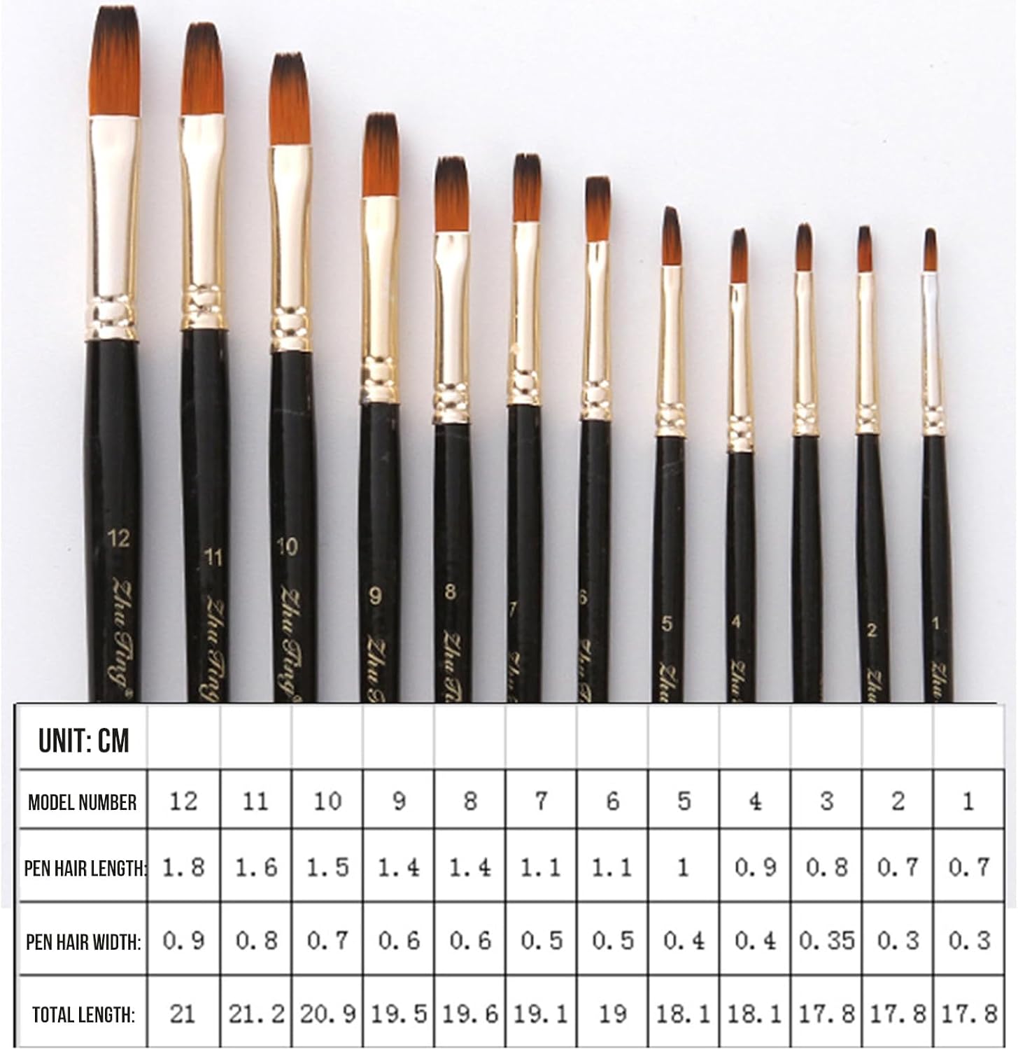 Regalo di festa per studenti, artigiani e artisti professionisti. Facile da lavare con acqua tiepida. Consigli: prima dell'uso, si prega di immergere in acqua a bassa temperatura per alcuni minuti 12 tipi di pennelli ad acquerello per varie esigenze di pittura e dettagli. Manico in legno antiscivolo, offre una presa comoda. Soddisfa facilmente varie esigenze di dettaglio, illustrazione, rivestimento, miscelazione Pennelli professionali: punta piatta, punta rotonda (da 1 a 12). Adatto per studenti, bambini e hobbisti. Ogni pennello è contrassegnato sul manico, facile da differenziare e utilizzare Setole in legno e nylon, buon assorbimento d'acqua, ghiere in metallo sigillate estremamente saldamente che non fuoriescono o si allentano facilmente Molto adatto per la maggior parte dei tipi di pittura come pittura su viso e corpo, arte della parete, olio, acquerello, guazzo, disegno acrilico, pittura con stencil, pittura di modelli in scala, pittura su pietra e roccia