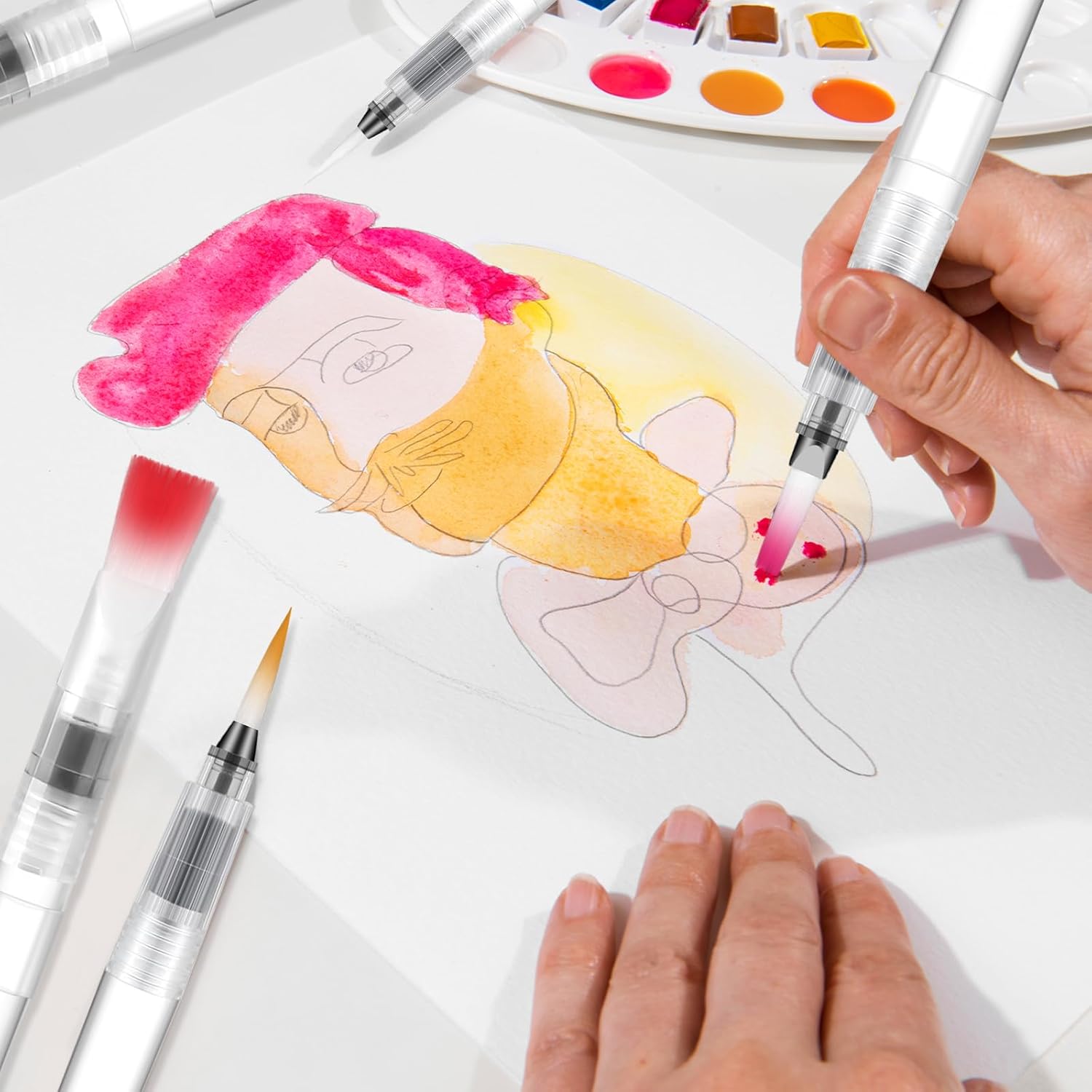 Confezione da 12: 12 pennelli per acquerello, tra cui: 3 testine piatte + 9 punte a punta. Ci sono 3 misure (piccole, medie e grandi) per soddisfare le vostre esigenze di pittura quotidiana. Ricaricabile: questo pennello per acquerello può riempire il colore dell'acquerello, è a prova di perdite, leggero, portatile, impermeabile e adatto per i viaggi. 【A base d'acqua】 Questa è una matita colorata a base d'acqua. È possibile aggiungere facilmente acqua o inchiostro semplicemente svitando il fusto della penna acquerello e controllare facilmente il flusso di inchiostro o acqua premendo direttamente sul fusto. Punte in nylon: 3 diverse punte sono realizzate in nylon di alta qualità, che non si scheggiano e hanno una buona elasticità. Il corpo della penna in plastica assicura che la penna acquerello rimanga intatta durante l'uso e non fuoriesca o schizzi. Ampia applicazione: questa matita colorata solubile in acqua è ampiamente utilizzata in acquerelli, acrilici, polveri, pastello, idrosolubili, tempera, inchiostri e altri dipinti ed è molto facile da pulire.