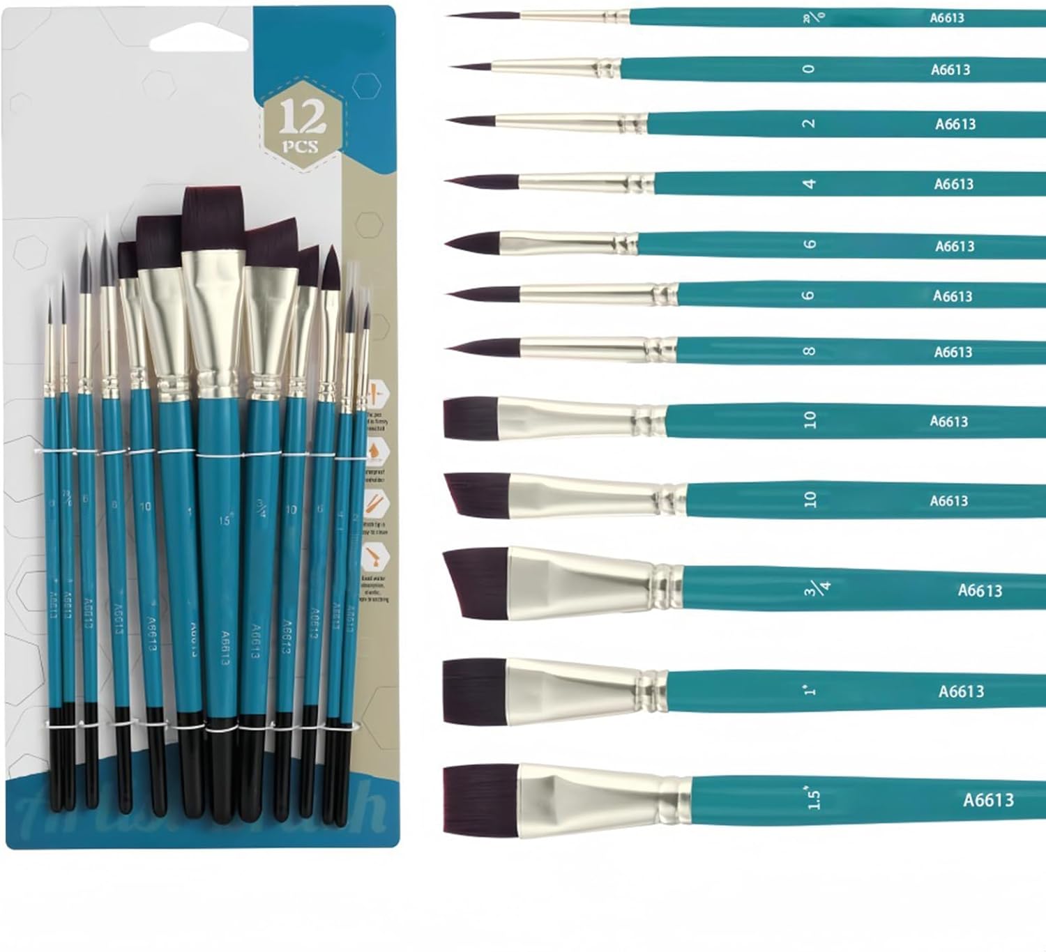 Ottimo per bambini, principianti, studenti, artigiani e artisti professionisti. Facile da lavare con acqua corrente, acqua calda. Quindi utilizzare le dita per pettinare delicatamente dall'alto basso. Posizionamento verticale per l'asciugatura 6 pennelli a manico in legno, per varie esigenze pittura e colorazione, come pennello fodera, pennello obliquo. Soddisfare tutte le esigenze pittura, dettagli, illustrazioni e rivestimenti Pennello professionale adatto per pittura viso e corpo, olio, pittura acquerello, acrilici, pittura a guazzo, pittura con stencil, pittura modellino in pittura roccia Realizzato con setole in legno e nylon, buon assorbimento d'acqua, facile da colorare Ogni pacchetto viene fornito con 12 tiri pennello per bambini: pennello pennello rotondo, pennello per punta obliqui, pennello a punta a punta. Leggero in peso, facile da trasportare