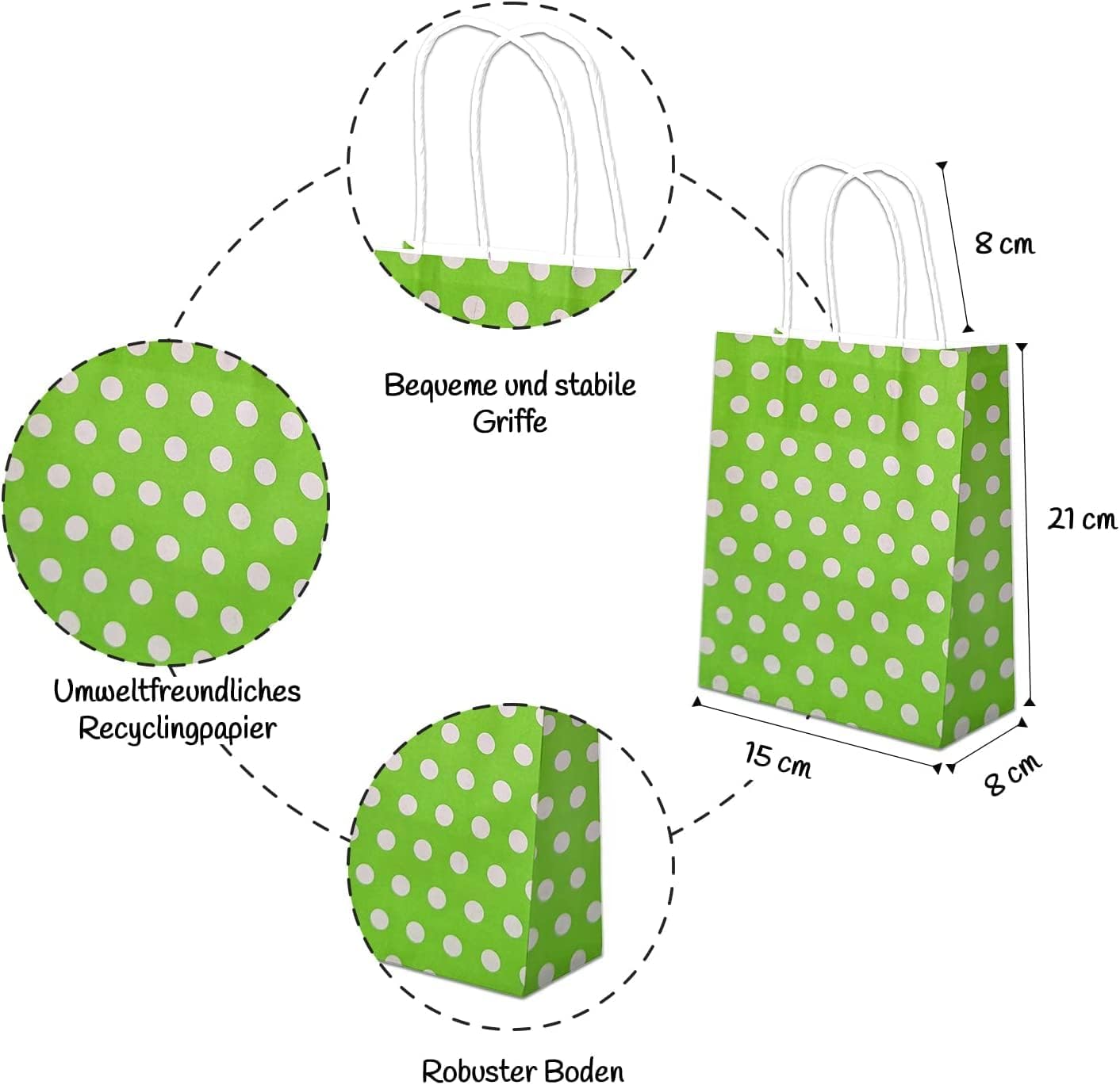 Die Tüten sehen wirklich süß aus. Sie stehen stabil und sind gut verarbeitet. Das Material ist eher dünn und nicht so robust. Zum verschenken aber absolut ok. Wenn man sie öfter verwenden möchte, muss man sorgsam damit umgehen
